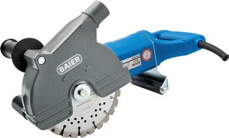 Baier 464-4 diamantrilleskære med 4 skiver. Skæredybde for maskinen er variabel ned til 60 mm dybde. Når der arbejdes med 2 diamantskiver er skærebredden: 9-43 mm. Når der arbejdes med 4 diamantskiver (alt materialet bliver skåret væk på én gang) er den maksimale bredde 18 mm. Arbejder med diamantskiver på Ø185 mm.