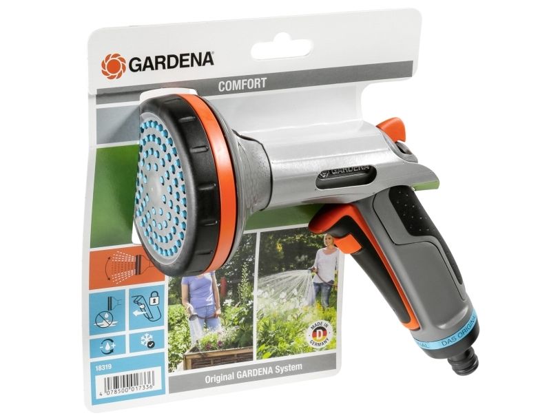 The Comfort Bed Sprayer is particularly suitable for watering beds and larger planted areas in the garden, as the soft spray can be adapted to the plant bed size. Soft plastic components on the spray gun head provide protection against damage. If the water flow is to be continuous, you can lock the pulse trigger. The tiring of the hand is thereby prevented.