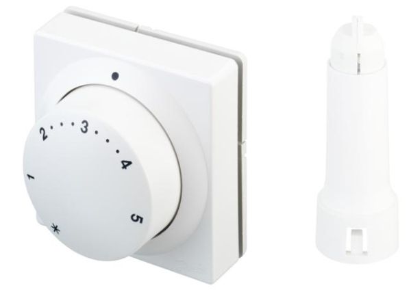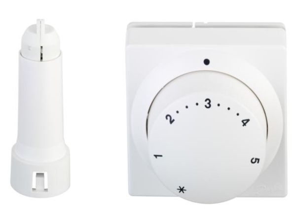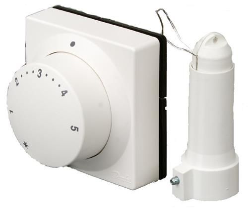 Temperaturføler og reguleringsenhed er sammenbygget i én enhed, der placeres på et lettilgængeligt sted.