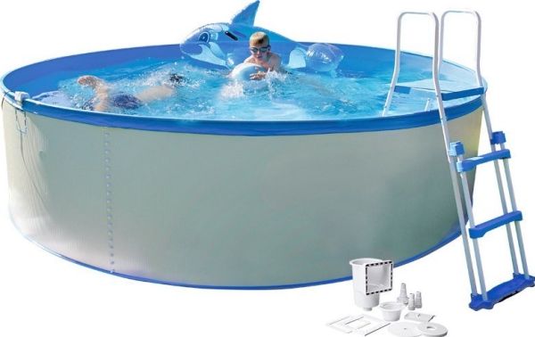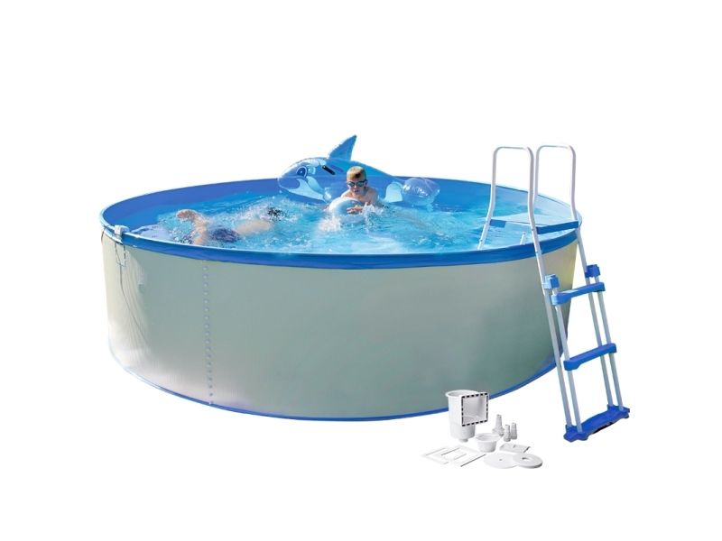Komplett familiebasseng med oppsamlerpumpe og stige – Ø 3,5 x 0,9 meter