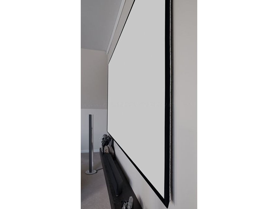 The Aeon Series is a fixed frame projection screen that uses Elite's EDGE FREE technology. The EDGE FREE design resembles a giant size flat panel TV display. The Aeon includes an ultra-thin trim as an installation feature to further enhance the overall appearance.