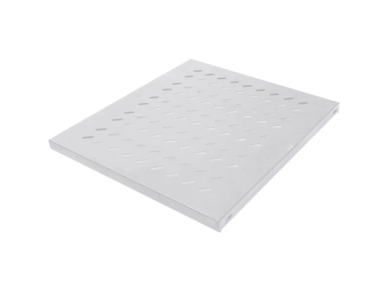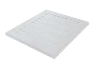 Komponent hylde 430x400mm til montering på de forreste og bageste monteringsprofiler fodaftryk 1.0mm stål med ventilationshullerne Statisk belastning max. 50 kg malet lys grå eller sort