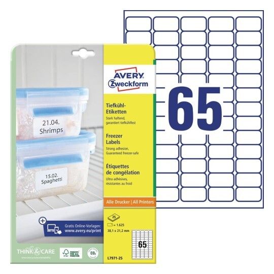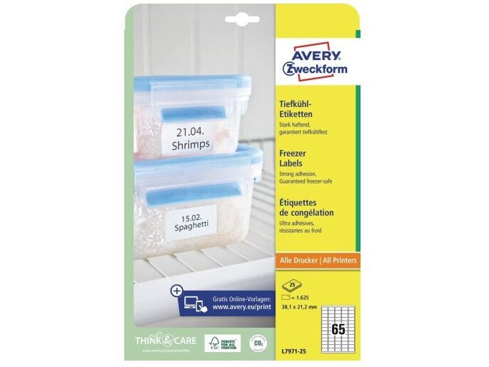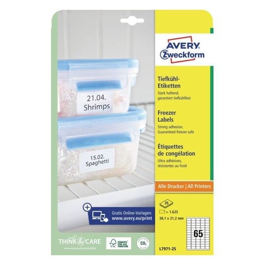 | • Til mærkning og organisering af frost- og kølevarer • Påføringstemp. fra -20°C, brugstemp. fra -50°C til +70°C • Tåler kontakt med tørre, ikke-fedtholdige levnedsmidler • FSC® certificerede • Design og print nemt med GRATIS skabeloner |