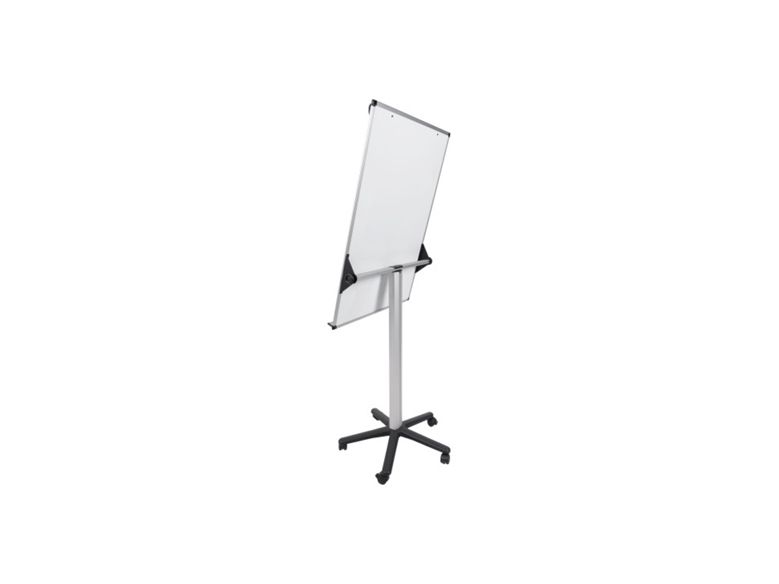 STATEN OG KOMMUNERNES INDKØBSSERVICE A/S God til at lave brainstorming, tage noter eller lave visuel præsentation i et stort format, som sikrer at alle omkring bordet nemt kan se med. Overfladen er i en fin, hvid farve. Den er lavet af melamin. Den er særligt praktisk, da den er på hjul og derfor nem at flytte rundt på. Med en overflade på 70 cm x 100 cm og en maksimal højde på 185 cm er den nem at bruge. Produceret af genanvendte og genanvendel[...]