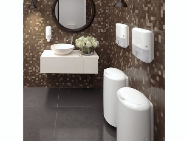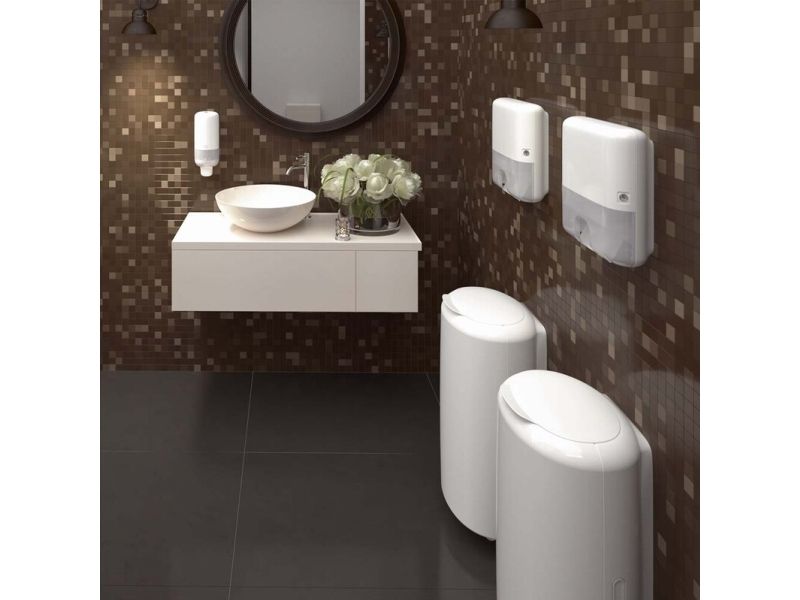 Tork 50L avfallsbeholder i Elevation Design er ideell for mange toalettrom og kan monteres fleksibelt på veggen eller gulvet i henhold til plass tilgjengelig og dine behov. Tork Elevation-dispensere har en funksjonell, moderne design som gjør varig inntrykk på gjestene dine.