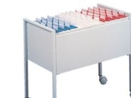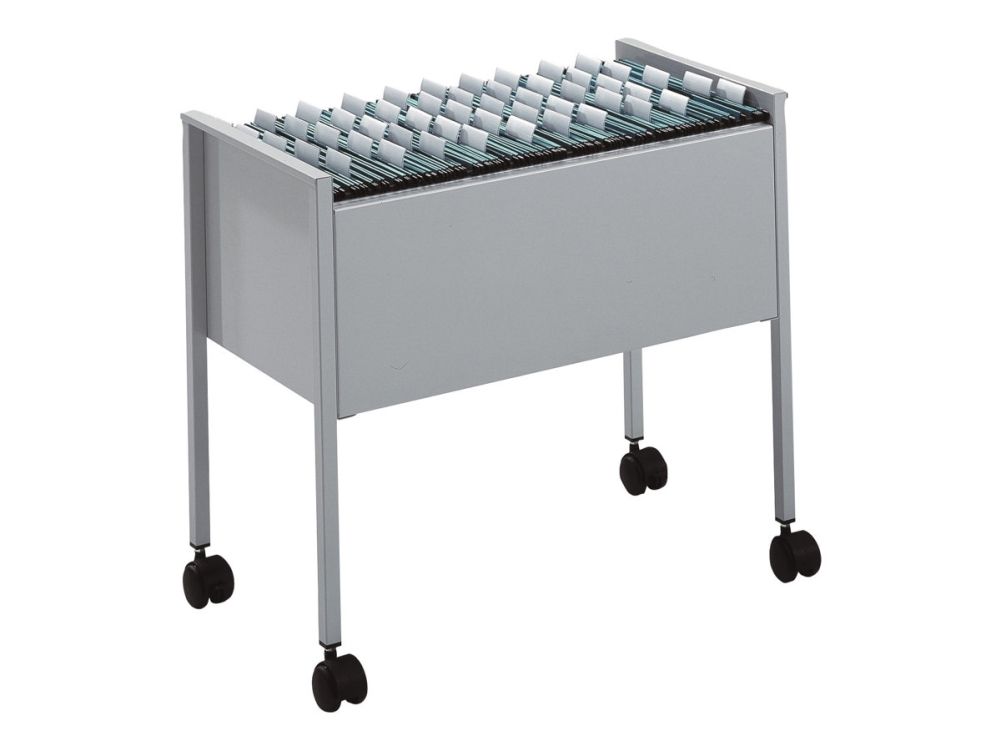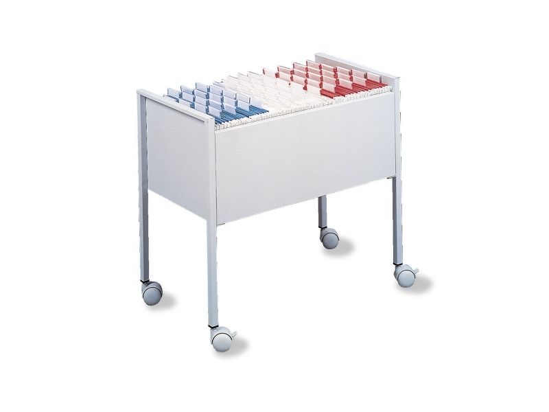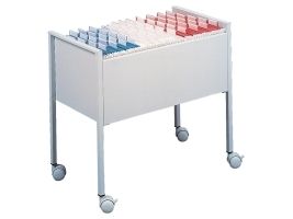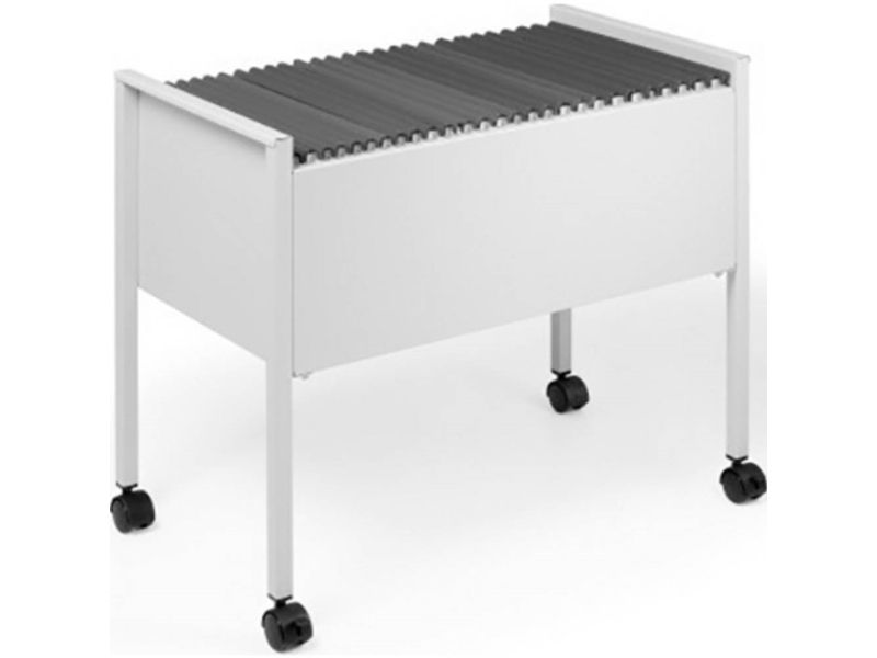 Hængemappevogn til ca. 80 stk. A4-hængemapper. Udstyret med fire hjul, to med bremser til stabilitet under brug. Af epoxy polyester belagt stål til at give ridsefast overflade. Leveres flad pakket med monteringsvejledning. Mål:BxHxD 655x592x368