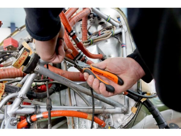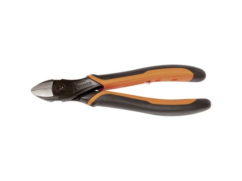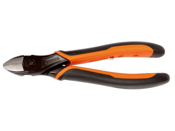 Skævbider, som i tog af ergo™-processen er udviklet. ISO 5749. Udførelse: bruneret, rustbeskyttelse. Materiale: Højeffektivt stållegering, ERGO™-greb med 2-komponent-materiale, termoplastiske overflade på en solid polypropylen for optimal skridsikkerhed. Induktionshærdede skærekanter. Progressiv skæring: Snitningen styres radius forløber langs kanterne for hårde materialer som pianotråd tæt på hængslet og bløde materialer som kobber og plast isolerede ledninger på spidsen til øjenvipperne. Skrue-forbindelse de fremragende klippeevne og pasnøjagtighed af skærekanter sikret. Afstand mellem led og skær reducerer for maksimal skærekapacitet ved lav åbningsbredde af grebet . Slanke, afrundede kæber til forbedret adgang til svært tilgængelige steder. Patenteret, i grebet har integreret åbnefjeder med til/fra-funktion.