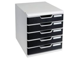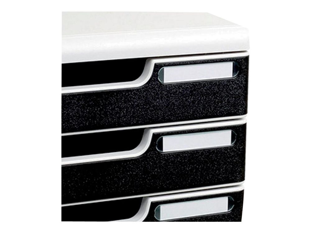Elegant and functional Filing system for A4+ formats. Boxes have the same height as a lever arch file and can be put together either horizontally or vertically (MODULO A4 and A3 compatible). Many combinations with 4 different drawer sizes (26, 54, 82 and 110 mm) exchangeable 4/3/2/1. Smooth drawer action with stop, easy to use drawer grip. Label holders and connectors included.