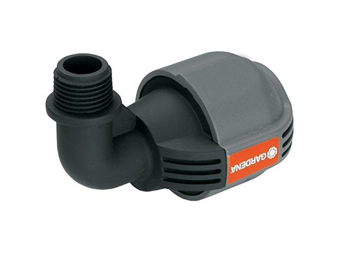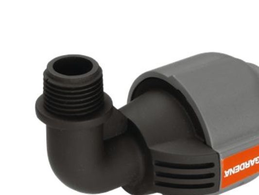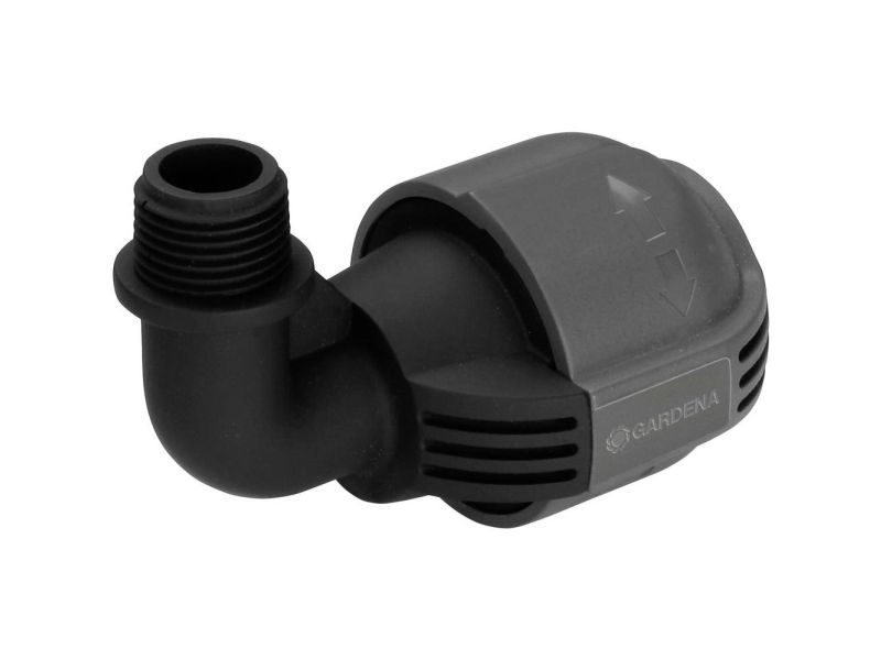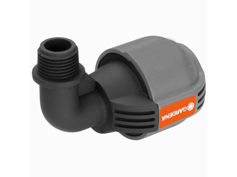 As part of the GARDENA Sprinklersystem – the GARDENA L-piece 25 mm x 1/2" male thread serves to connect the Pop-up Sprinkler S 80 (Art. No. 1569-26), and the Turbo-driven Pop-up Sprinkler T 100 and T 200 (Art. No. 8201-29 and 8203-29) at the end of the pipe. Through the patented "Quick & Easy" Simple Connection Technology, pipe assembly or -disassembly is possible without tools through simple turning of the screwed fitting by 140°. For water-tight, safe operation, the thread connection of the L-piece is self-sealing.