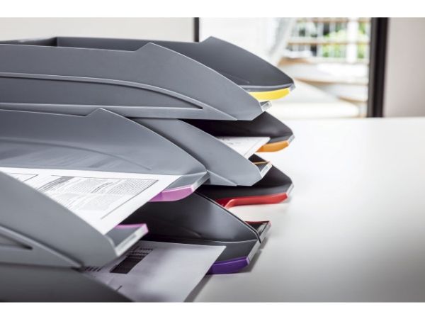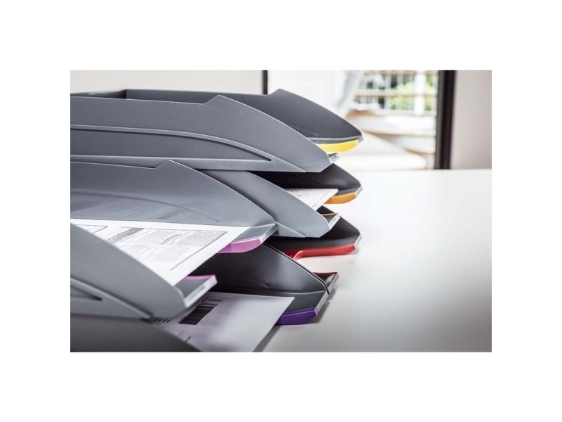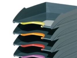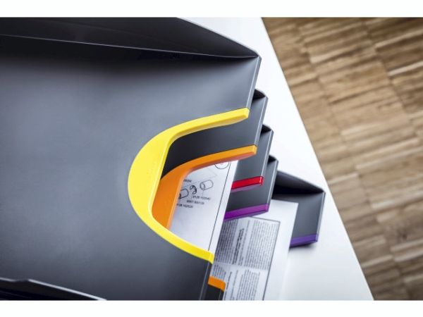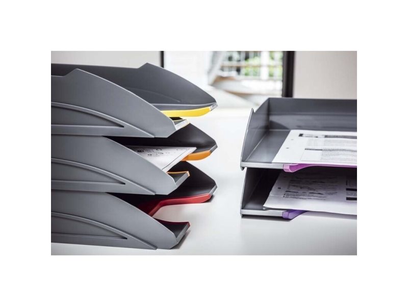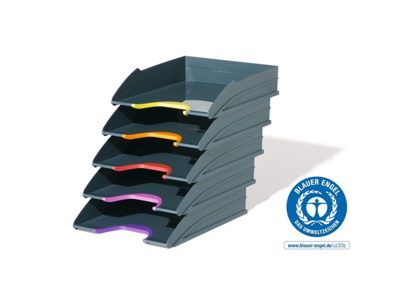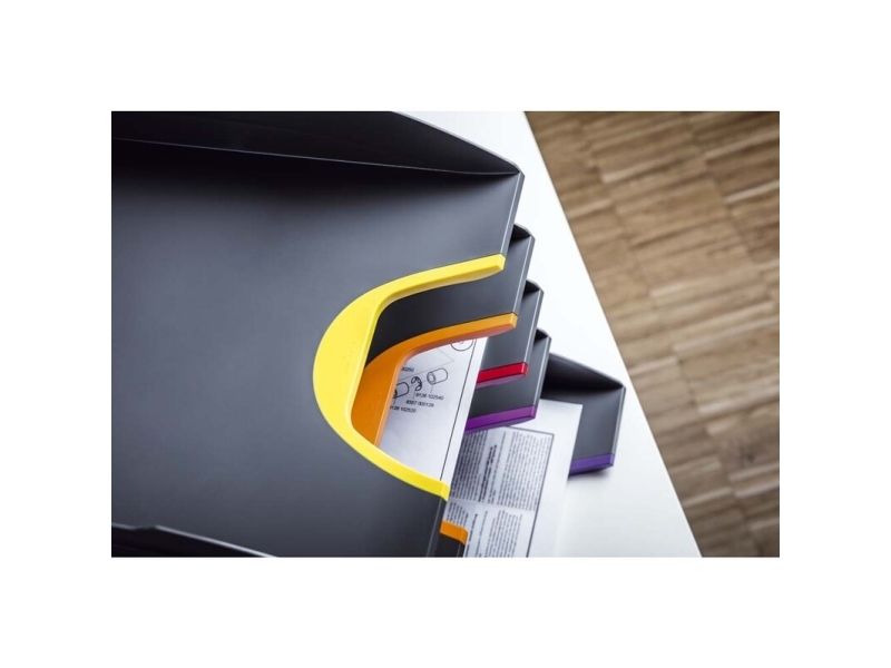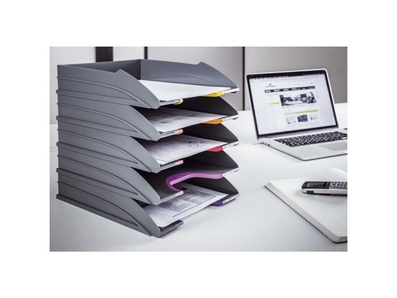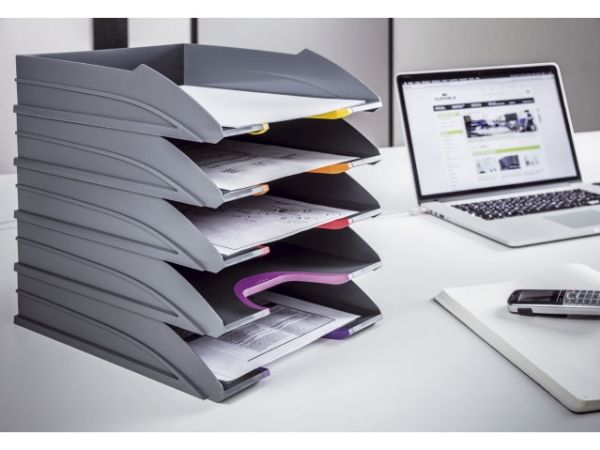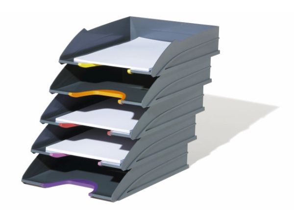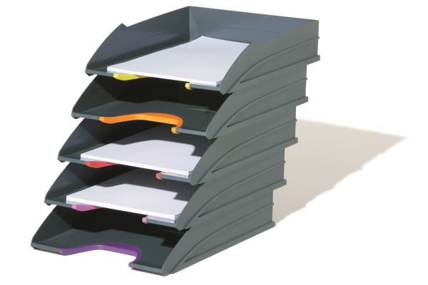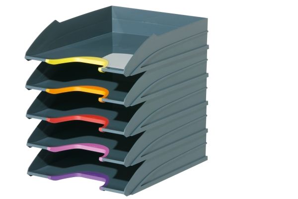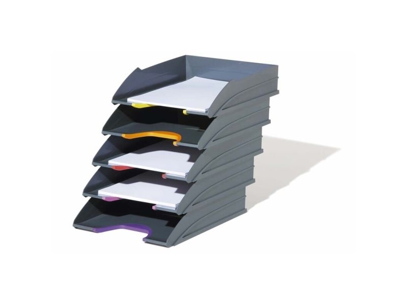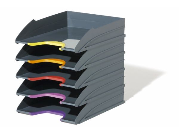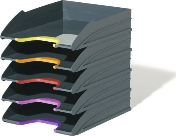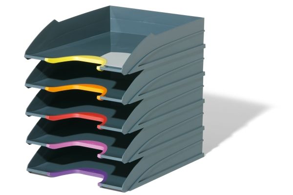 - Set med 5 eleganta brevkorgar - Vertikal eller förskjuten stapling är möjlig - Ger enkel åtkomst till dokument - Färgade linjer för enkel organisering och arkivering - Hög kvalitet - Robust och stabil konstruktion