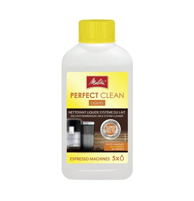 Fjern enkelt og grundig melkeavleiringer i melkesystemet til din helautomatiske kaffemaskin med rengjøringsmidlet Melitta Perfect Clean Milk System Cleaner. Denne svært effektive formelen er et spesielt skånsomt og grundig vaskemiddel som garanterer hygienisk rengjøring. Rengjør melkesystemet ditt minst en gang i uken eller etter behov. Rengjøringseffekten med PERFECT CLEAN flytende vaskemiddel sikrer hygienisk, effektiv og grundig rengjøring av melkesystemet til din helautomatiske kaffemaskin. Dette fjerner melkeavleiringer. Det flytende rengjøringsmidlet er skånsomt mot materialet. Produktfordelene med PERFECT CLEAN flytende vaskemiddel må ganske enkelt blandes med vann og dermed muliggjøre enkel og rask rengjøring av melkesystemet. Målelinjer på siden av flasken hjelper med dosering. Det flytende vaskemiddelet er luktfritt. Brukes til hygienisk rengjøring av melkesystemet på din helautomatiske kaffemaskin. Fordeler med regelmessig rengjøring av maskinen bidrar ikke bare til å forbedre smaksopplevelsen, men forlenger også maskinens levetid.