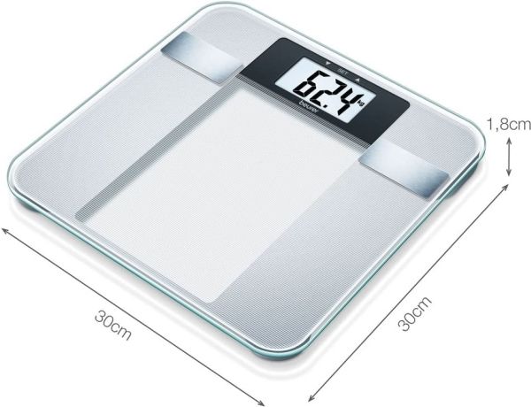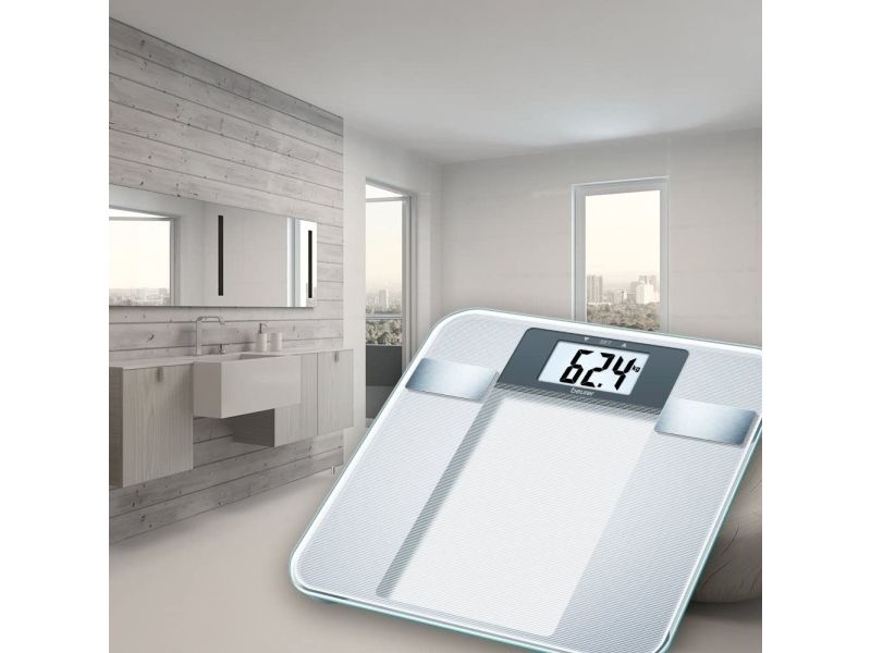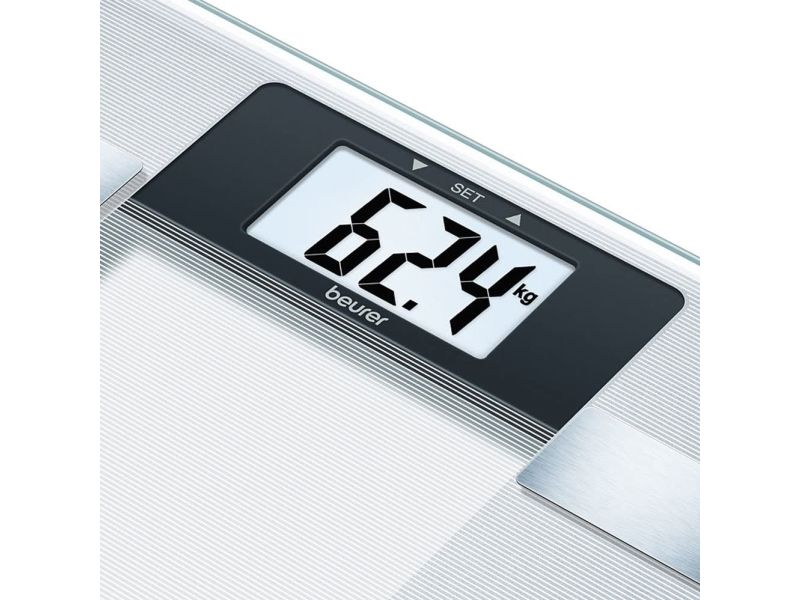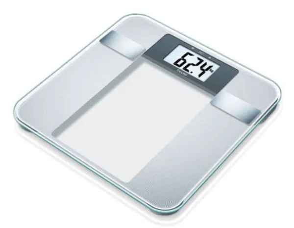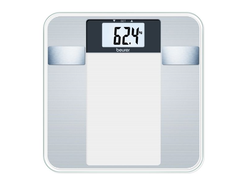 BG 13 Kropsanalysevægt med BMI. 5 aktivitetsniveauer. Hukommelse 10 brugere. Kapacitet 150 kg med 100 g interval. Farve: Klar glas/Børstet stål. 5 års garanti.