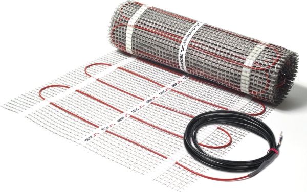 DEVImat 150T (150W/m²) er en tynd varmekabelmåtte, selvklæbende alt-i-en-måtte, med en meget lav indbygningshøjde på kun 3,5 mm, der er perfekt til renovering af eksisterende gulve. Varmemåtten kan anvendes til både total- og komfortopvarmning. DEVImat er et 360° fuldt afskærmet dobbeltleder varmekabel i særdeles høj kvalitet, med FEP-isolerede ledere og rød PVDF-yderkappe (ikke UV-bestandig). Den runde profil og robuste konstruktion sikrer en både hurtig, let og sikker installation. Den kolde tilledning er et installationskabel med massive ledere, der sikrer hurtig installation. En tydeligt synlig samling forhindrer, at man utilsigtet installerer varmekablet i væggen.