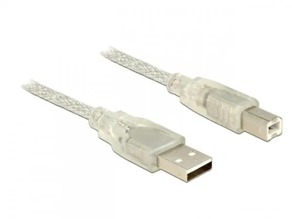 Delock - USB-kabel - USB-type B (hann) til USB (hann) - USB 2.0 - 5 m - gjennomsiktig