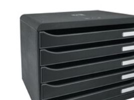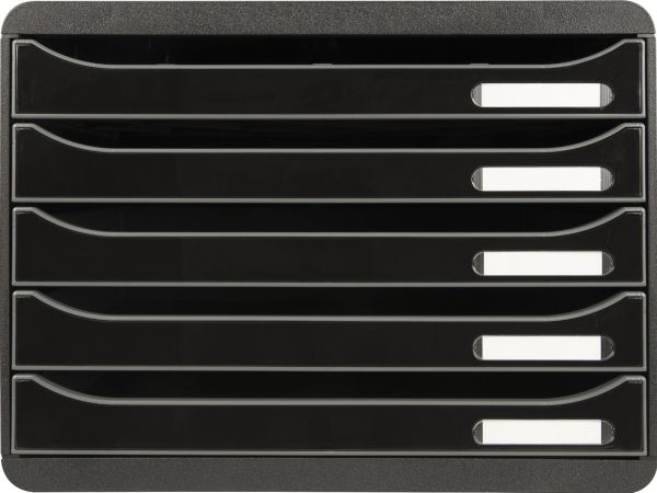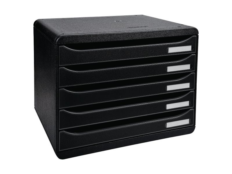 Drawer set with 5 drawers of 43mm for storage of A4+ documents. Landscape format : fits perfectly on shallow cupboard or desktops (external depth = 27cm). Ideal for landscape documents like data sheets. Stackable through 4 notches. Open drawers allow to store documents without opening. Smooth drawer action with stop and label holders (included). A Monday Sunday Labels set included.