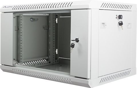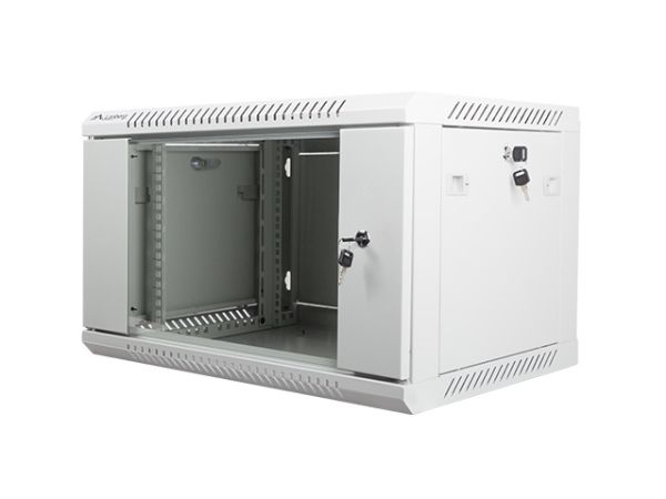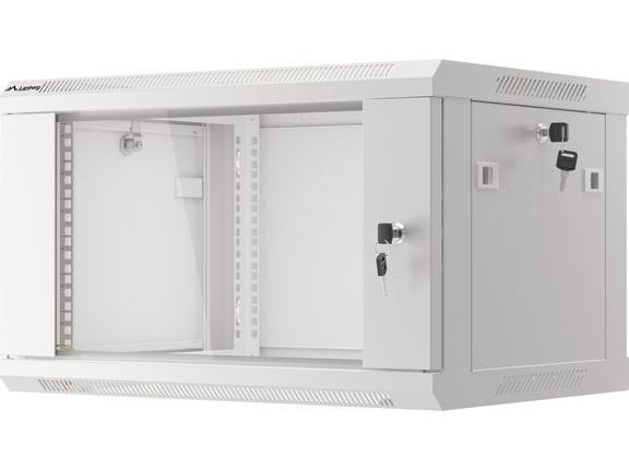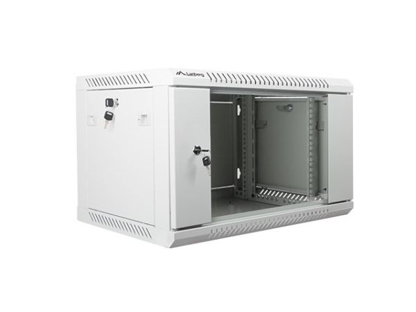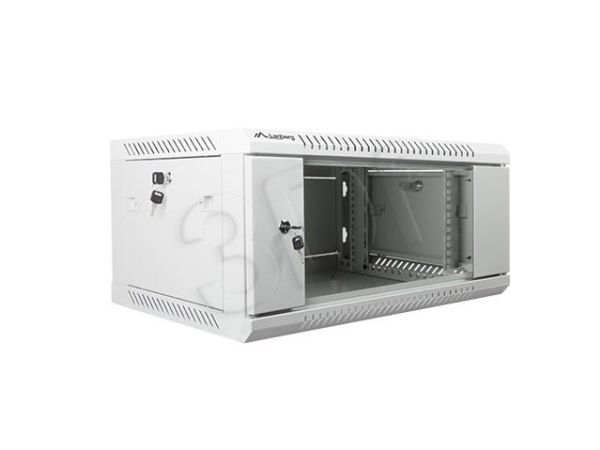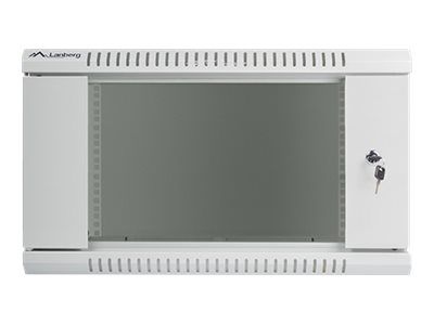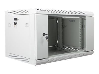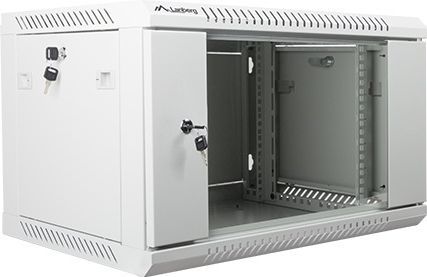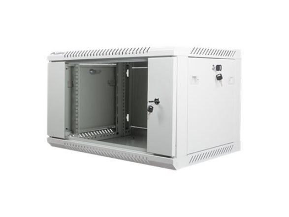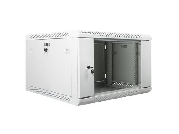 Wall mount, single section Lanberg cabinet WF01-6406-10S is a solution designed to expand networks, installation of cabling and equipment in size 19" with max. 60 kg. loading capacity. It can be used in networks, server rooms, small and medium businesses. It can also work in low voltage systems such as cable television networks, alarm systems, fire protection systems and access control systems, CCTV and IP surveillance. Appropriate design allows simple, self-assembly. Cabinet is characterized by IP20 degree of protection, opening front door with possibility of rotate to 180° with lock, removable side panels (locks included). The cabinet has cable entry panel on top and bottom cover. This product is made of high grade cold rolled steel.