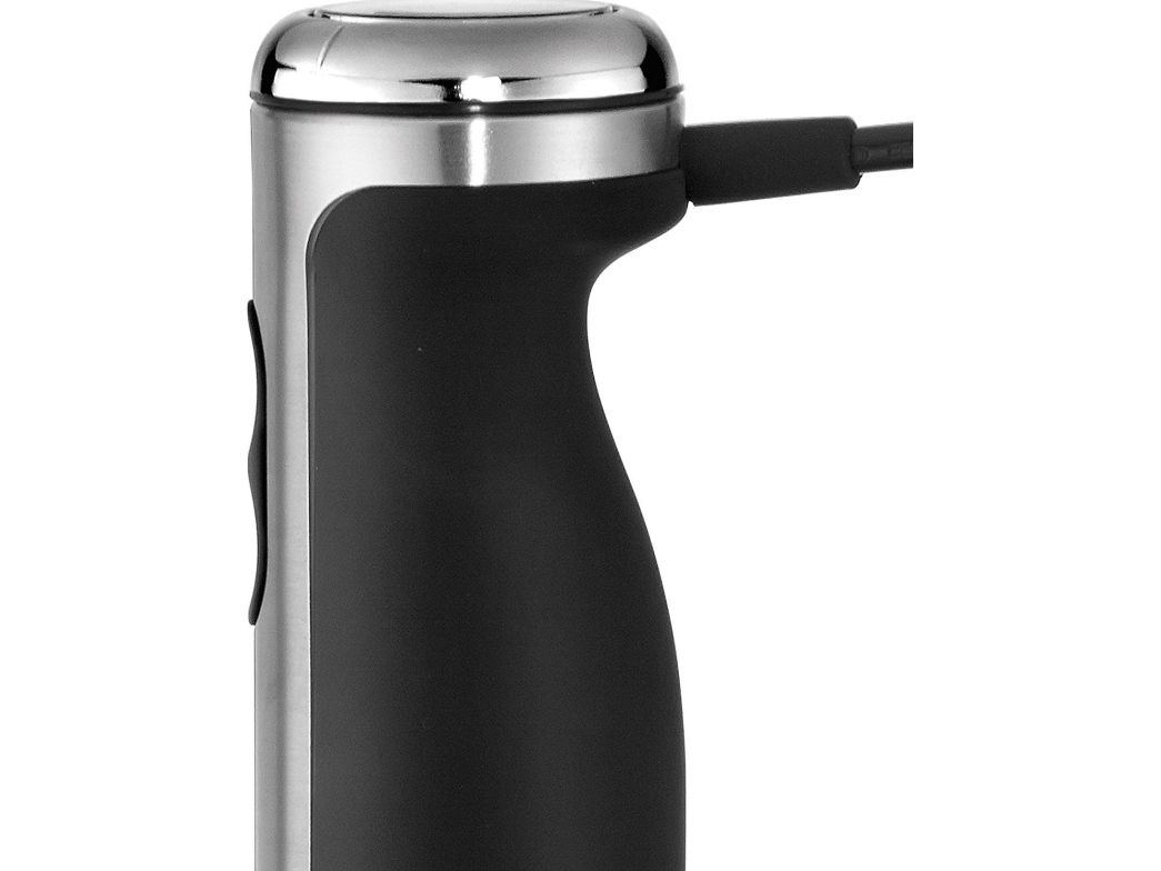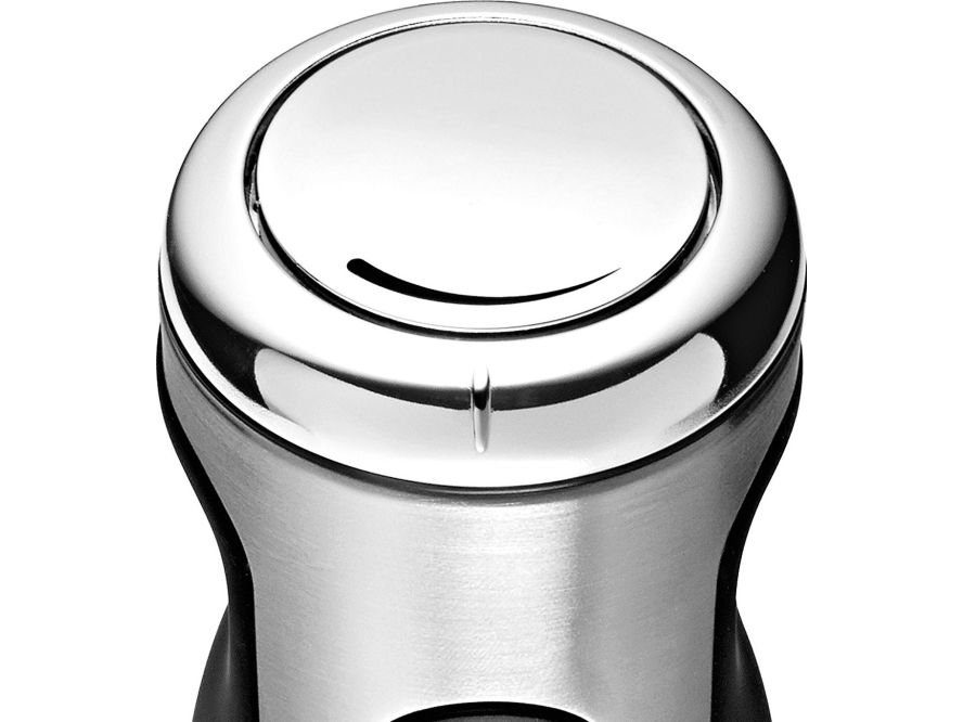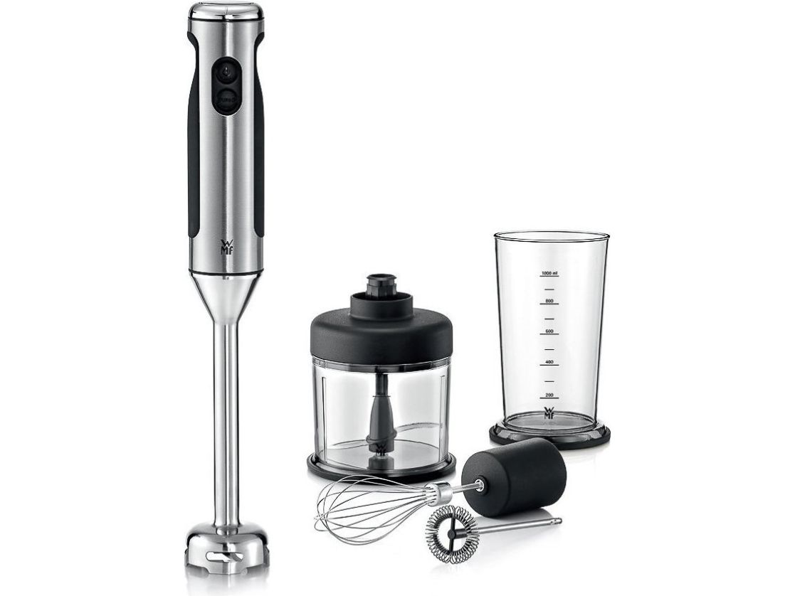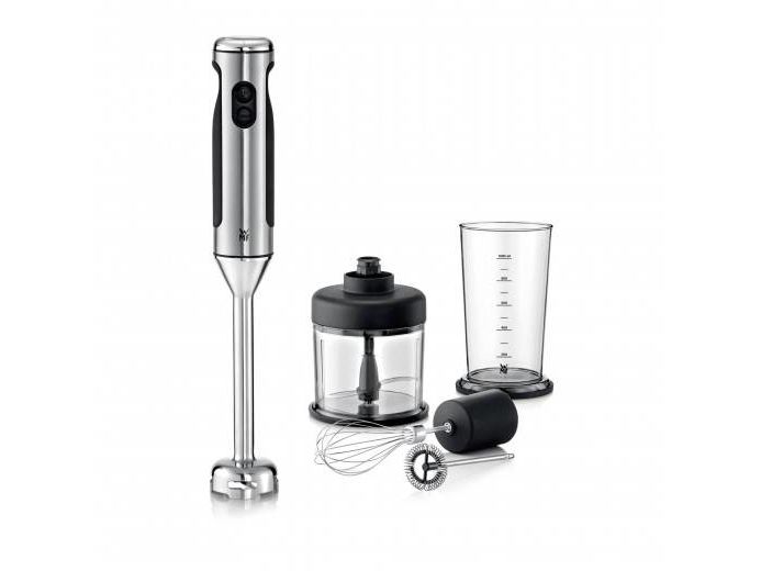 As the first hand-held blender with a full Cromargan® stainless steel casing, the WMF stainless steel blender impresses with its slim shape and especially with its technology. The Cromargan® blending stick, with WMF 2+2 blade technology in combination with a long-lasting 700 W motor, gives perfect blending results. That's WMF High Performance! At 13,000 rpm, the motor reaches a speed of 125 km/h. The speed can be adjusted and set to the maximum power using the turbo function. The ergonomic non-slip handle makes the stainless steel stick blender perfectly comfortable and safe to use, whilst a clever suction cup is used to secure the cable and the protective cap for the blade also ensures a perfect position. Includes a practical 1 litre blender container with scale and non-slip base. Thanks to an optional accessory set consisting of a chopper, whisk and milk frother, the LINEO stainless steel stick blender can be turned into a smart food processor. The blender stick is removable, making the device flexible.