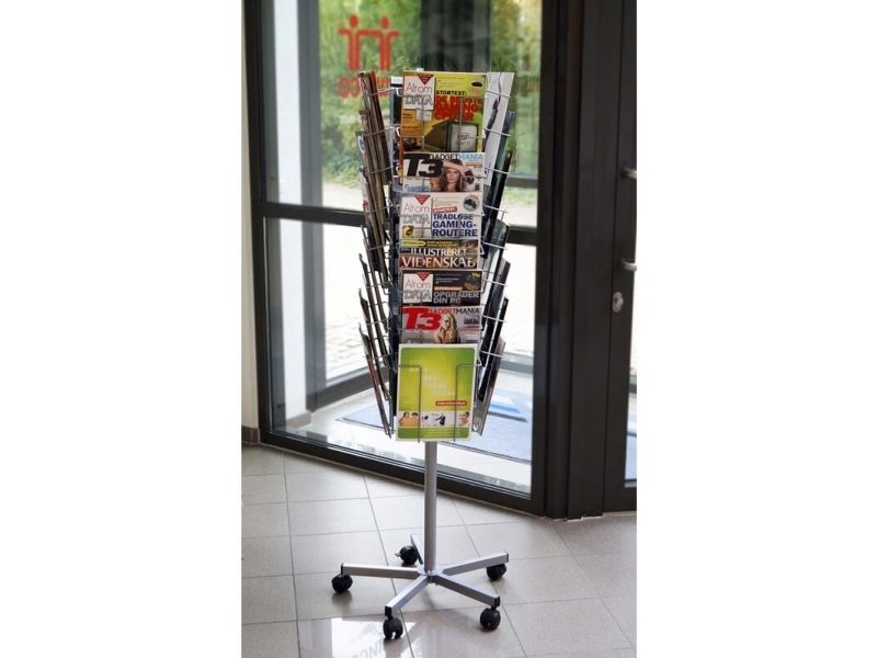 TWIN AGENDA gulvstander designet til alle former for tabloidaviser og andre tidsskrifter. TWIN AGENDA gulvstander har det samme smarte design som alle vores andre TWIN AGENDA Brochurestativer.