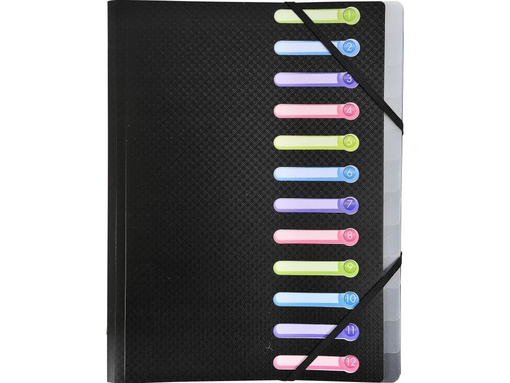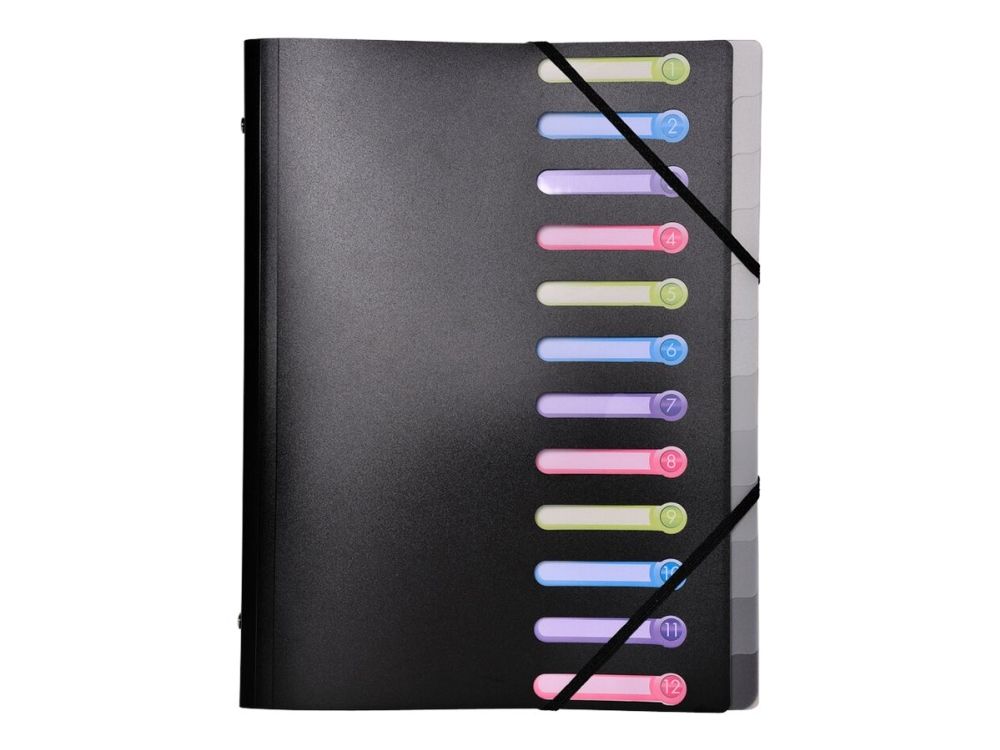 Exacompta - Klassifikasjonsmappe - 12 rom - 12 deler - for A4 (210 x 297 mm) - med fliker - svart