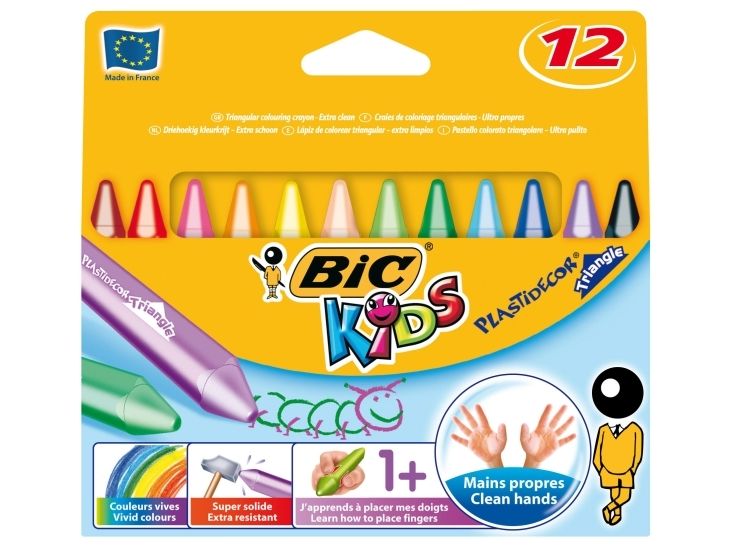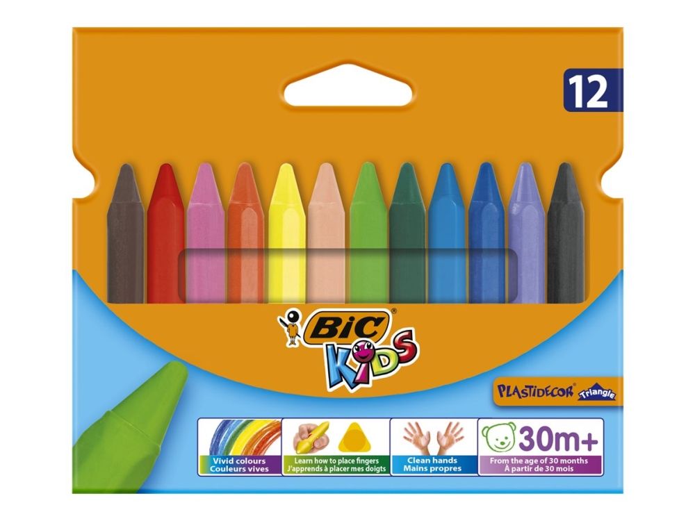 BIC KiDS Plastidecor Triangle Class Pack - Fargeblyant - polyetylenvoks - ikke-permanent - assorterte vibrerende farger (en pakke 12)