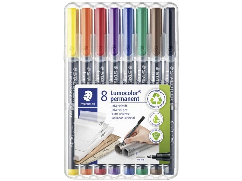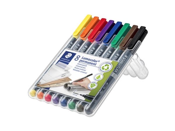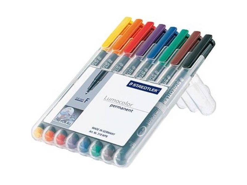 Universalpen Lumocolor 318WP-8 fine ass. farver (æske a 8 stk.)