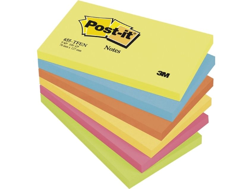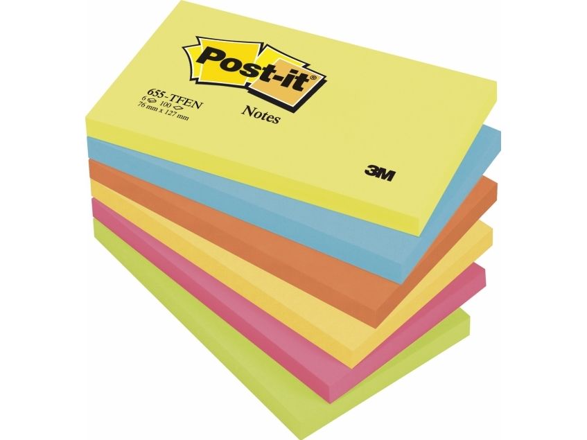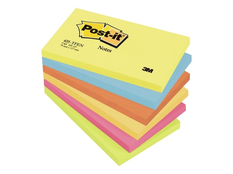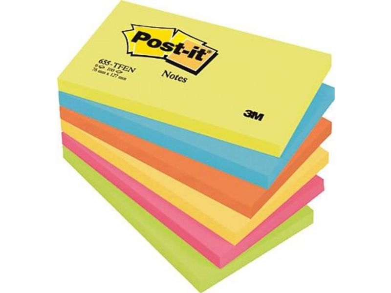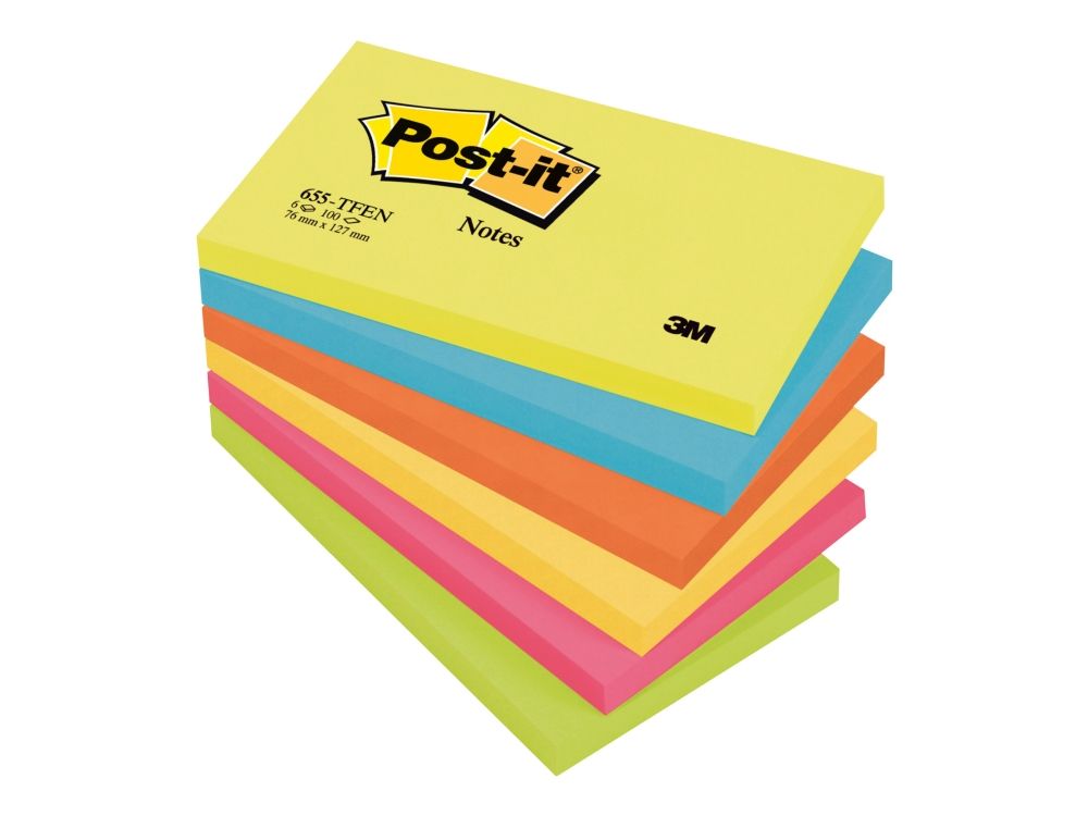 Post-it 655-TFEN - Noter - 76 x 127 mm - 600 ark (6 x 100) - neongrønn, ultrablå, neonoransje, ultrarosa, ultragul