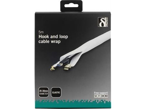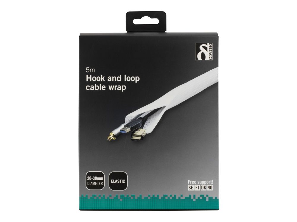 DELTACO nylon cable wrap, hook and loop fastener, 5m, white