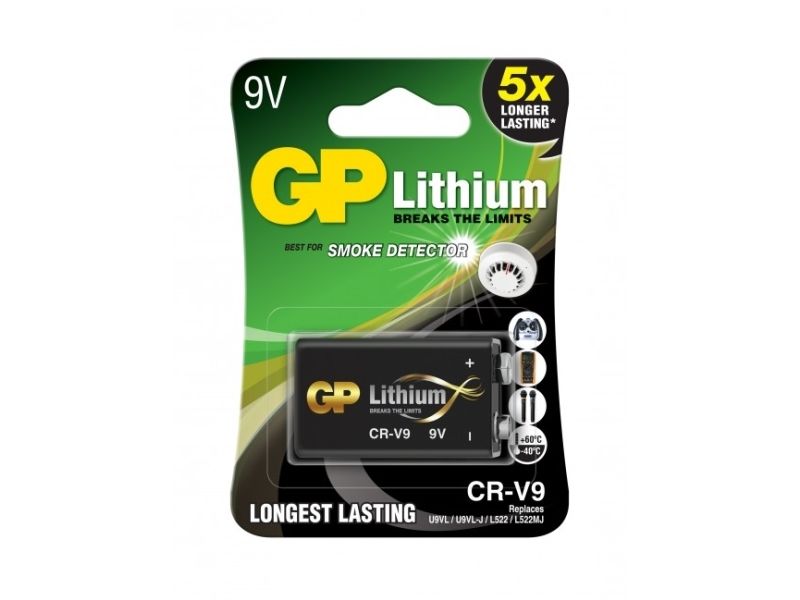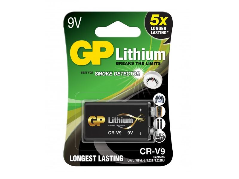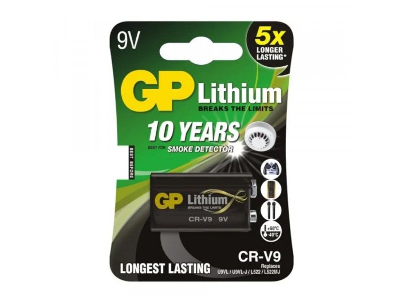 GP Lithium 9V is the best choice for powering smoke detectors. Providing 5 times longer lifetime than standard 9V batteries, it is the ideal solution to avoid operating problems and regular replacement.