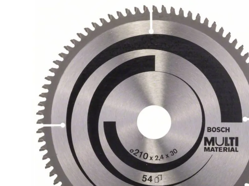The Multi Material Circular Saw Blade delivers powerful cuts in a wide range of materials. Its high-quality precision-ground carbide teeth make the blade robust enough for cutting various materials, while its base blade made of dimensionally stable SK5 hardened steel (> 40 HRC) ensures accuracy. Furthermore, the blade´s expansion slots lower vibration during use, which dampens noise and reduces heat development. Use this saw blade in non-ferrous metals, aluminium, plastics, epoxy and wood. The HLTCG (High-Low Triple Chip Ground) teeth make the Multi Material Circular Saw Blade robust for working with abrasive materials.