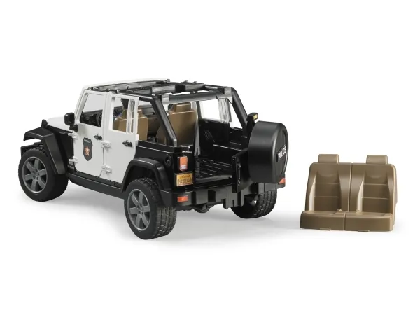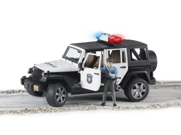 Bruder Jeep Wrangler Rubicon Police vehicle with police officer and accessories toy BRUDERs produktsortiment er meget omfattende. Talrige køretøjer til byggeri, beredskab, erhvervskøretøjer, fritid, landbrug og skovbrug er værdsat verden over takket være deres spændende legetøjsverdener i en skala fra 1:16. Ligesom i det normale liv betyder en stigende mængde af BRUDER-køretøjstrafik, trafikovertrædelser er stigende. Af denne grund har bworld nu også en politistyrke til at håndhæve lov og orden. Servicebilen er baseret på den velkendte Jeep Wrangler Unlimited, og den har det tiltalende og slående farvedesign, der er typisk i USA, samt et havariblinkmodul monteret på taget. Jeep Wrangler Unlimited Rubicon er designet som et politikøretøj, og det giver utallige funktioner, der muliggør næsten ubegrænset sjov og leg. Ud over det todelte, aftagelige segmenttag åbnes motorhjelmen, bagdøren og alle fire sidedøre. Det siger sig selv, at køretøjet giver plads nok til fire BRUDER bworld-figurer. Alternativt kan bagsædet fjernes for at skabe plads til tilbehør, der er kompatibelt med BRUDER standardstik i læsseområdet. Det ekstra trækled er beregnet til at lette styringen gennem taglugen, og hvis det ikke er nødvendigt, kan det opbevares i køretøjets undervogn. Akslerne har typisk terrængående køretøjsophæng og slidbanedæk med hjul i tiltalende SUV-design. Frontgrænsefladen, der er velegnet til emner, herunder det valgfrit tilgængelige kabelspil og den aftagelige trækstangskobling, betyder, at der er ubegrænsede muligheder for forbedringer i BRUDERs verden. Politiudgaven af Jeep-modellen har et nyudviklet lys- og lydmodul med fire funktionelle knapper (1. motorlyd, 2. politisirene, 3. brandvæsenets sirene, 4. yep-signal). bworld politibetjenten er fuldt udstyret til at forstærke autoriteten. Taljebæltet har vigtige redskaber til det daglige politiarbejde, såsom lommelygte, radioenhed og kniple.