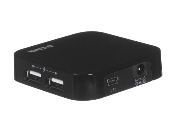 DUB-H4 er i pocket-size format og leveres med en 2 m USB kabel samt ekstern AC adapter.
