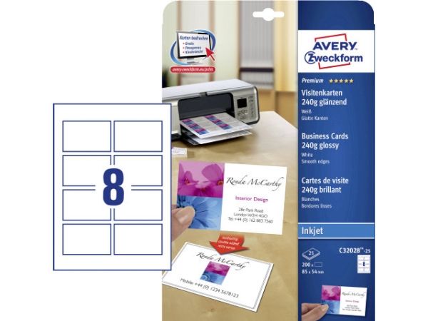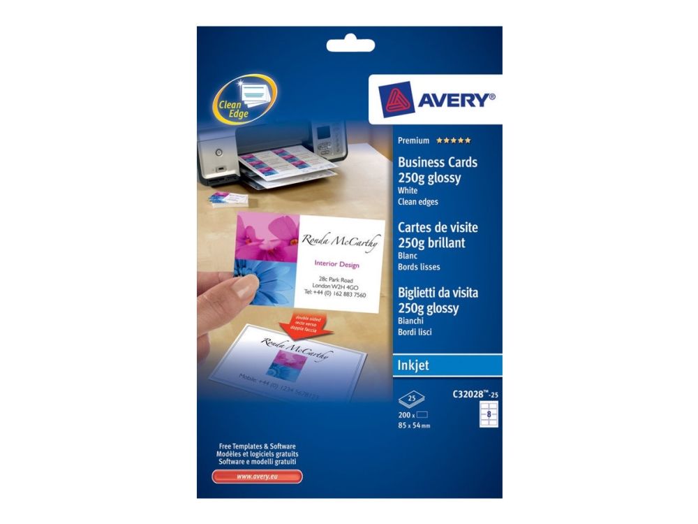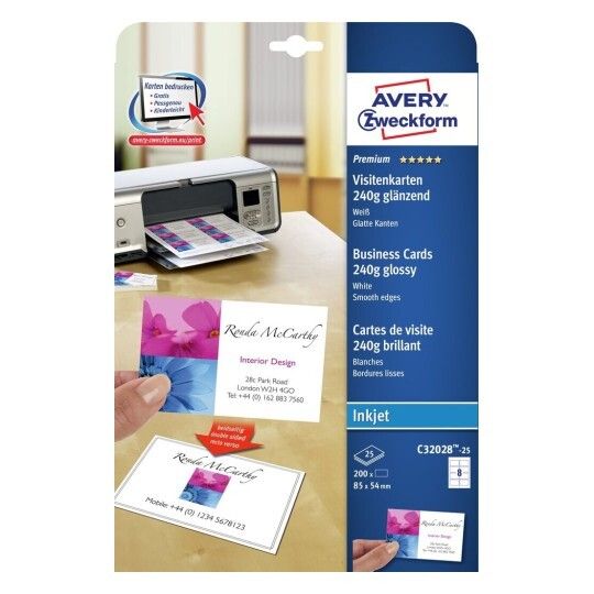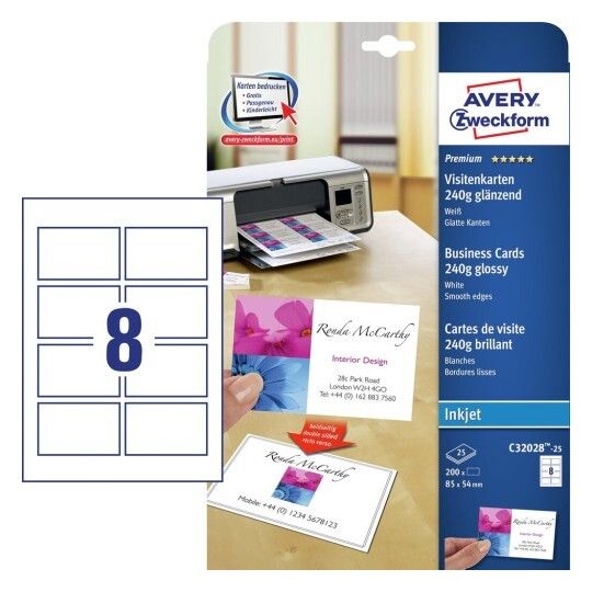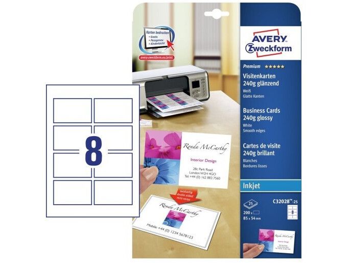 | • Quick&Clean™ sørger for visitkort med helt skarpe kanter • Kan også bruges som bordkort, gavemærkat, aftalekort mv. • Kan printes på begge sider • Print præcis det antal, som du skal bruge • Design og print nemt med GRATIS skabeloner |