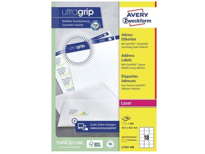| • QuickPEEL™ funktion for nem aftagning og påsætning • Med Ultragrip for præcis udskrivning uden papirstop • Velegnet til C6 konvolutter • FSC® certificerede • Design og print nemt med GRATIS skabeloner |
