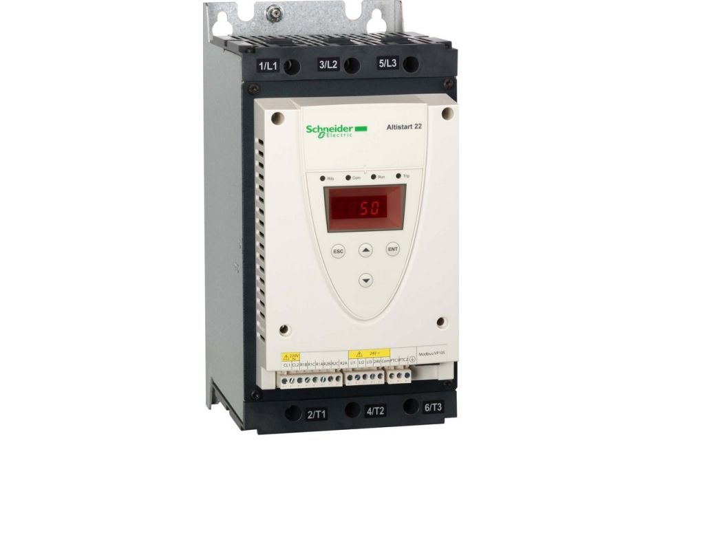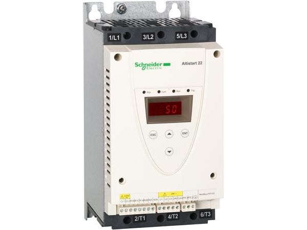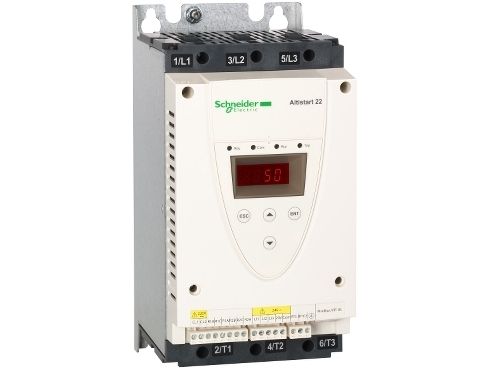 Denne softstarter kan fodre 3-fasede asynkronmotorer. Den har en rating på 47A og 230V til 440V, en nominel effekt på op til 22kW (400V til 440V standard) og op til 45kW (400V til 440V delta). Den er designet til enkle og komplekse maskiner såsom centrifugal- og stempelpumper, ventilatorer, skruekompressorer og materialehåndteringsudstyr. ATS 22's dimensioner øger alsidighed; tillader installation i alle typer maskiner. Den har en integreret bypass, dette reducerer støj og reducerer varmeafledning. Kompatibilitet med SoMove-softwaren betyder, at konfigurationer og indstillinger nemt kan overføres, hvilket betyder, at reservedele hurtigt kan installeres. Det giver en jævn start for dine maskiner, undgår mekanisk belastning og forlænger deres levetid.