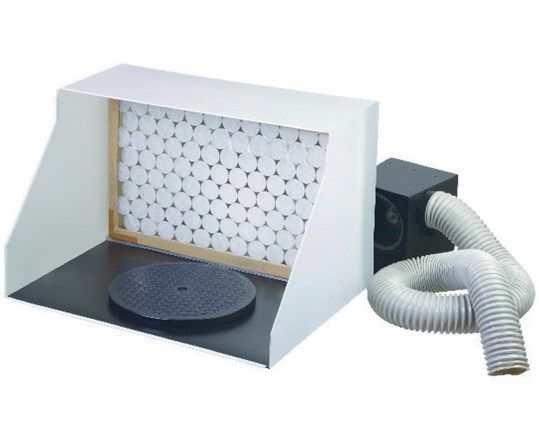 With a powerful built-in exhaust fan and a three-way adjustable pipe to direct unwanted fumes, work on your projects using our convenient spray booth which includes a rotating central platform that allows for a 360 degree view of your work.