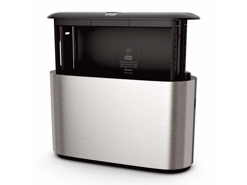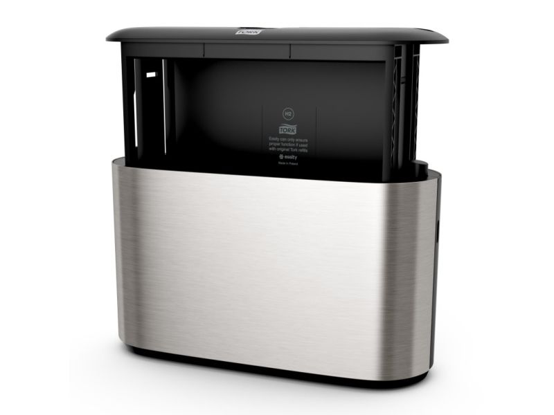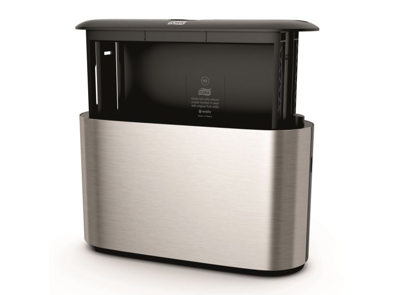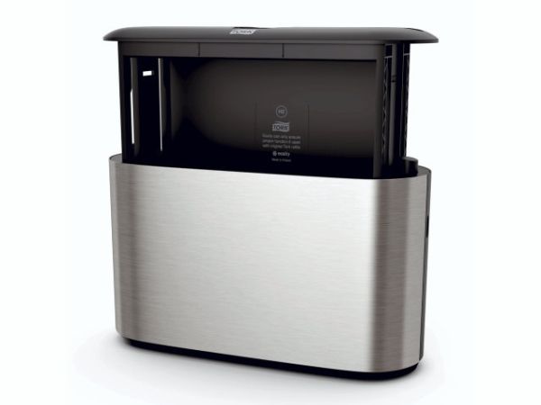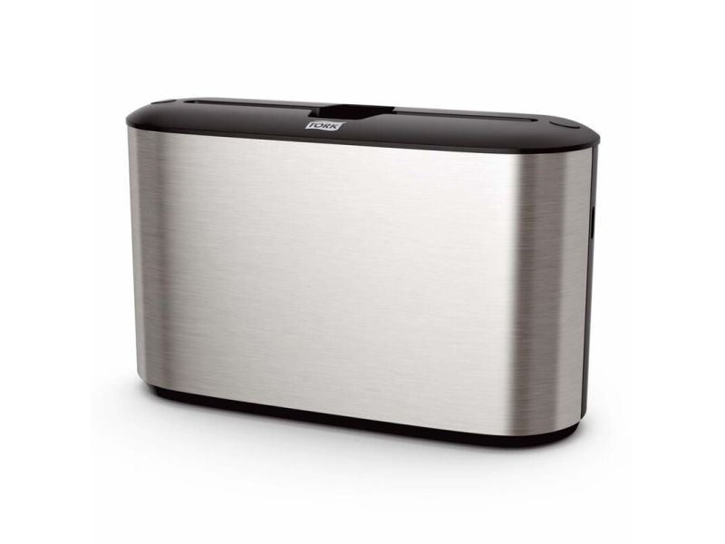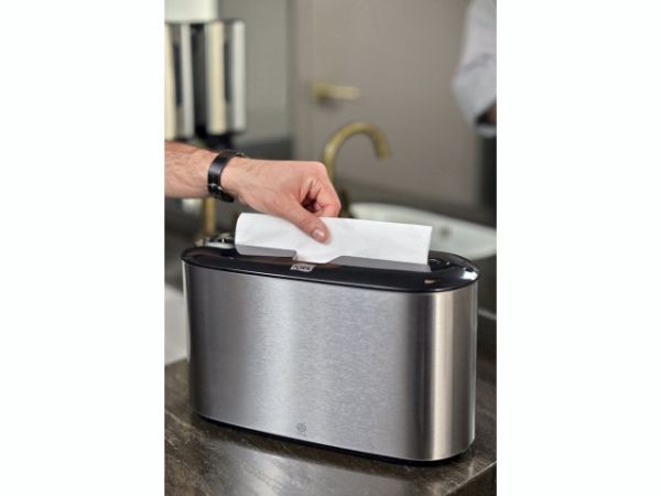 Et moderne design med glatte overflader og rene linjer, der passer ind i dit toilet. Bidrager til en behagelig gæsteoplevelse og signalerer høj kvalitet i dit etablissement. Elegant rustfrit stål med anti-fingeraftryk coating sikrer, at affaldsbeholderen altid fremtræder ren og pæn.