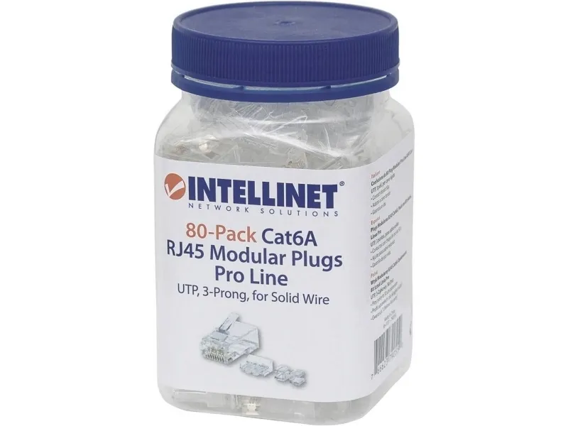 Intellinet Network Solutions RJ45 8-position, 8-contact (8P8C) modular plugs provide our customers with options for CAT5e, CAT6 and CAT6a cables in unshielded and shielded varieties. We offer 15 micron gold contacts for our standard plugs or a high-quality 50 micron standard in our Premium and Pro lines.