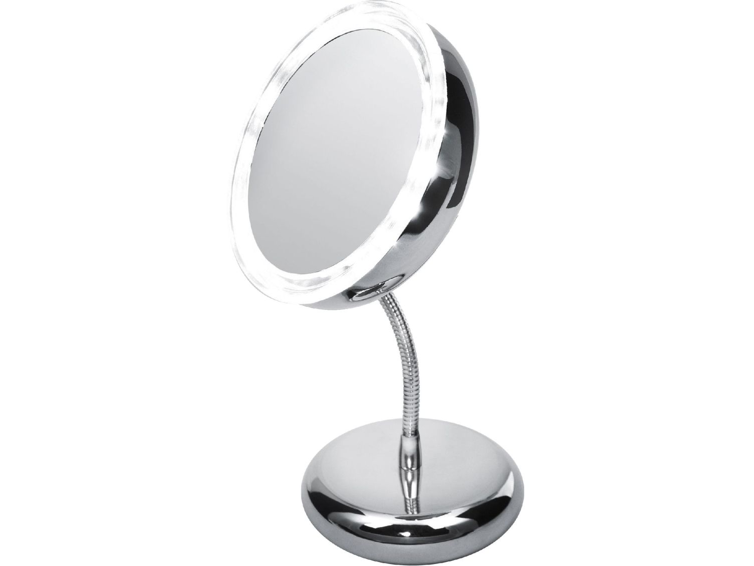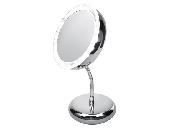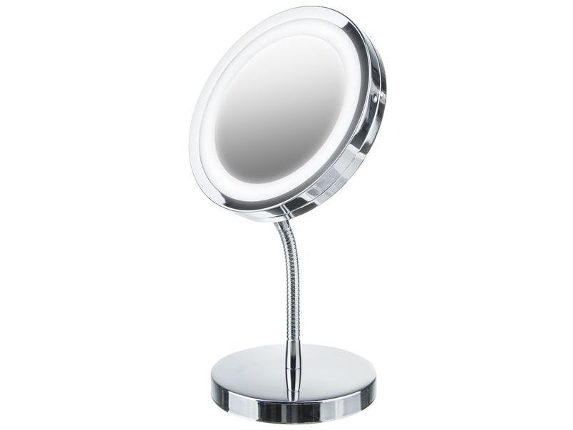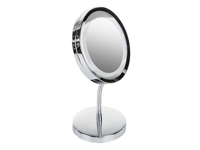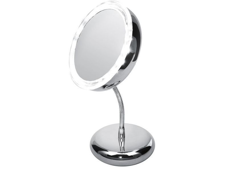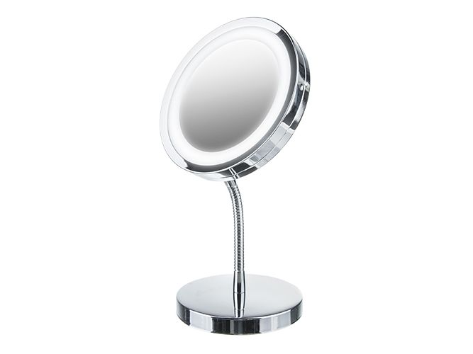 The portable illuminated mirror is a device that can make the make-up application or home beauty treatments much easier. Thanks to being supplied by four AAA batteries it will always be illuminated enough and to light your face and neck. What is more, the mirror can magnify the reflection three times helping you to apply the make-up in a more precise way. Since the mirror is really light and easy to transport, it can prove to be an indispensible device not only at home but also when you are travelling. Its lovely chrome housing makes it look elegant in all kinds of bathrooms or dressing tables.