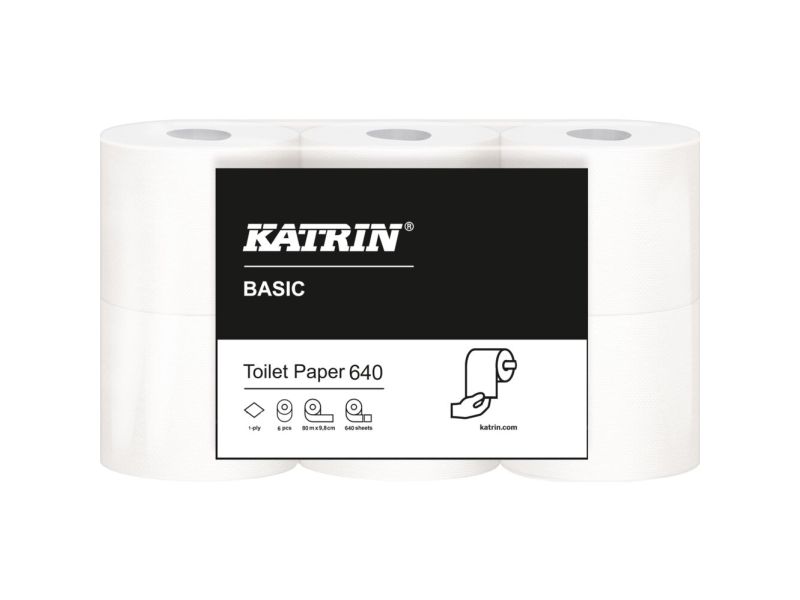 Toalettpapir, Katrin Basic, 1-lags, 80m x 9,7cm, Ø11,8cm, ubleket - (7 pakker x 6 ruller/kartong)