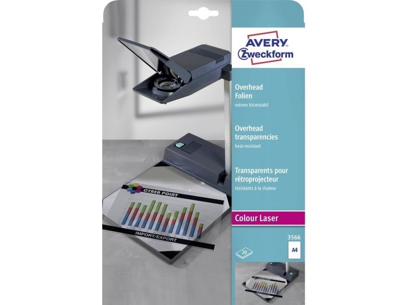 Avery Zweckform overheadfolie 3566 for overheadprojektor DIN A4 til laserprinter fargelaser/kopimaskin transparent 20 stk
