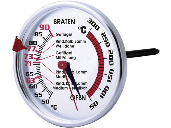 Med stege-/ovntermometeret kan du på én gang måle stegens kernetemperatur og den faktiske temperatur i selve ovnen. Styr på de vigtigste temperaturer. Med denne kombination lykkes enhver form for ovntilberedning så let som en leg.