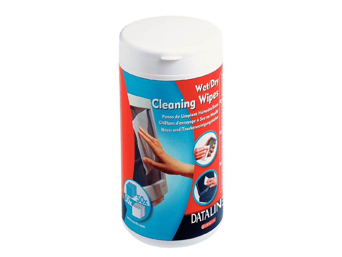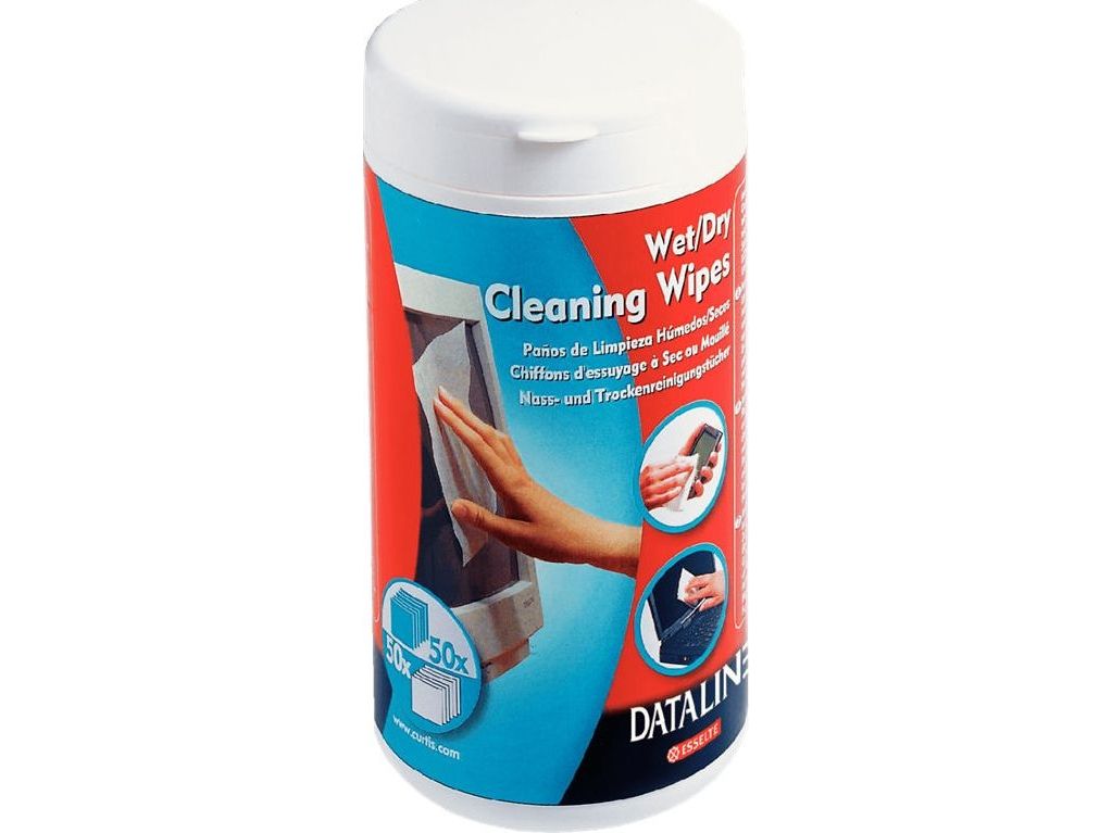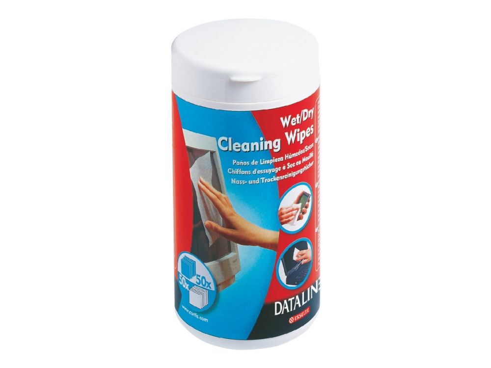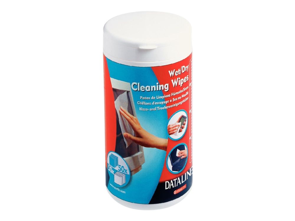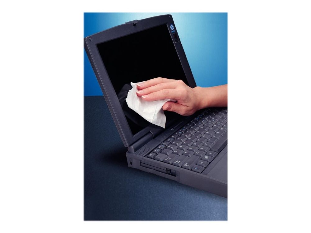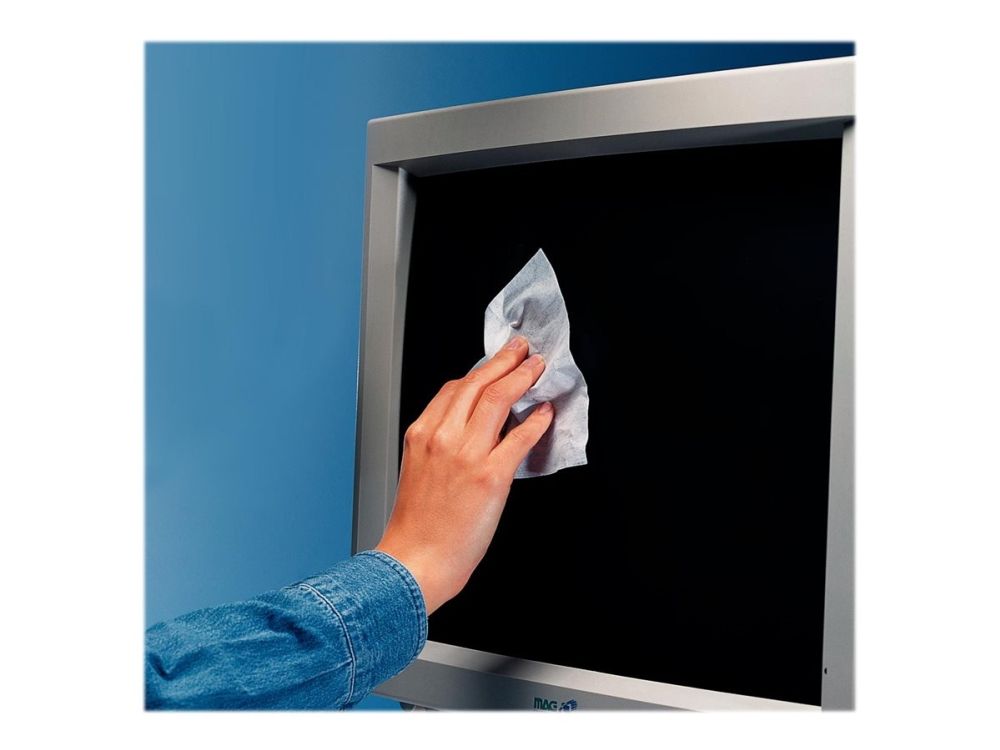 Våtservietter for rengjøring av skjermer og overflater i glass. Skader ikke overflaten. Riper ikke og lager ikke striper. Boks med 50 våtservietter og 50 tørrservietter.