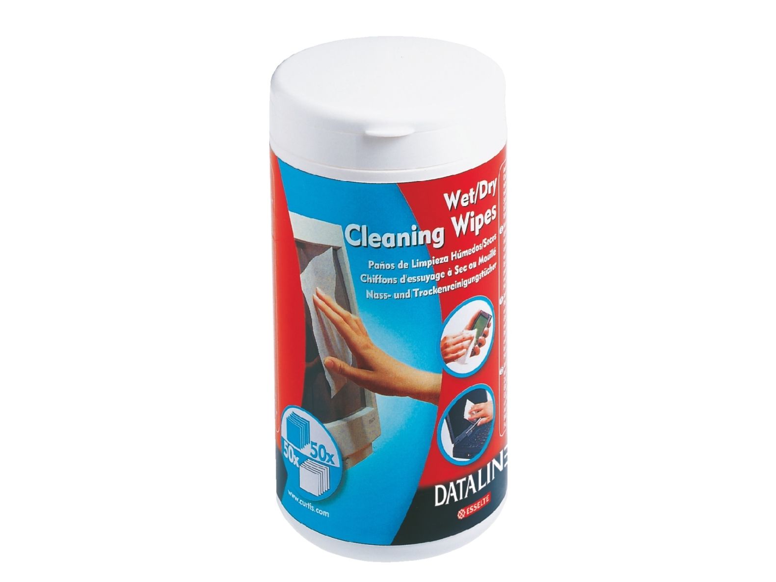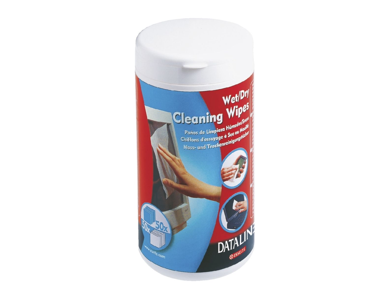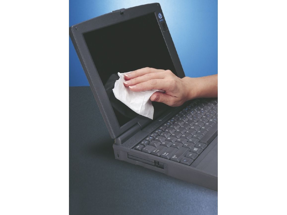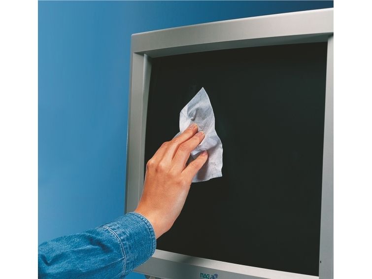 Våtservietter for rengjøring av skjermer og overflater i glass. Skader ikke overflaten. Riper ikke og lager ikke striper. Boks med 50 våtservietter og 50 tørrservietter.