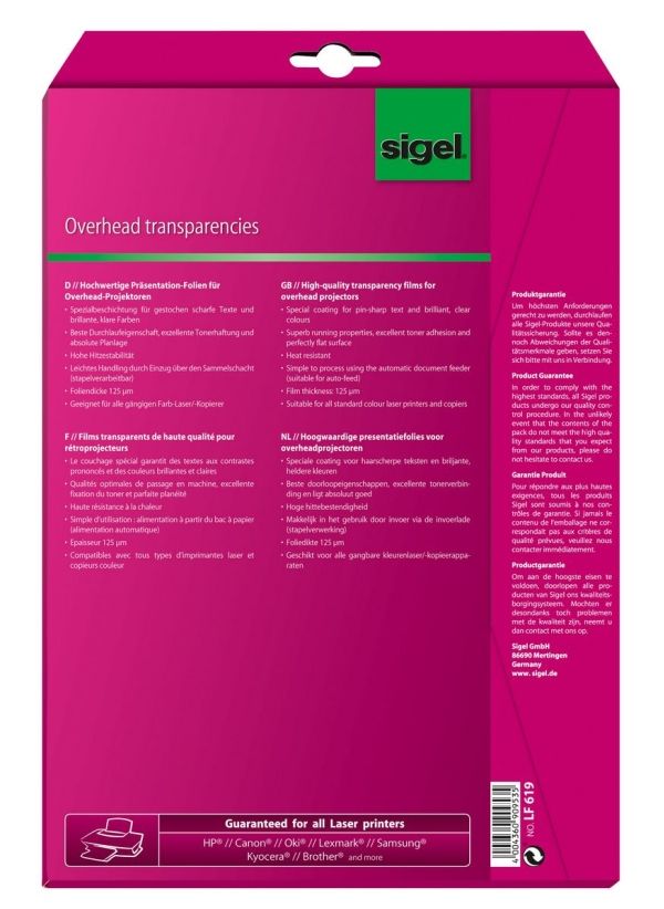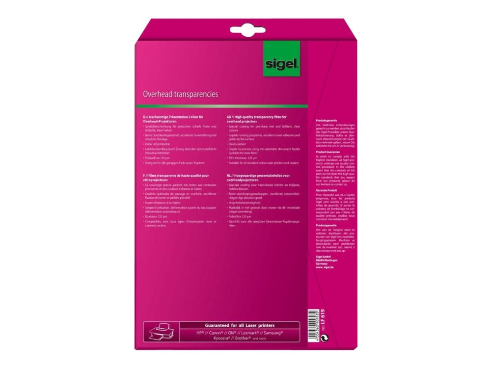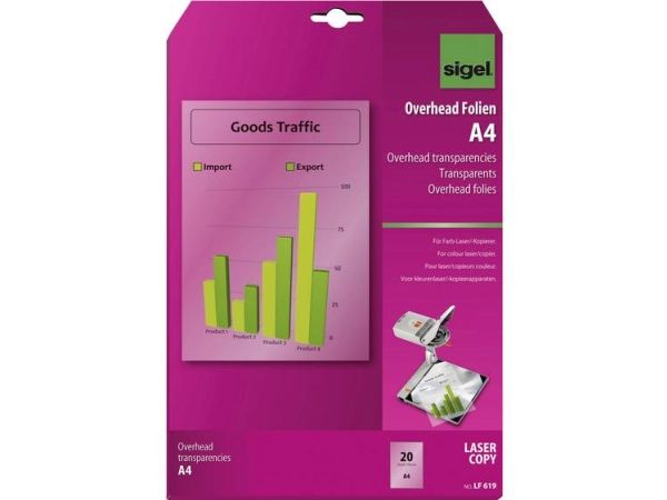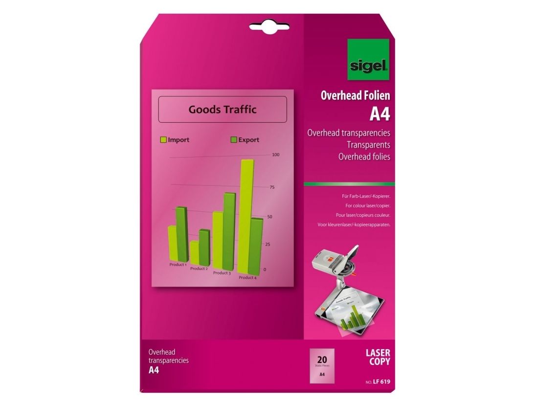 Sigel LF619 - 125 mikroner - A4 (210 x 297 mm) 20 ark overhead-transparenter