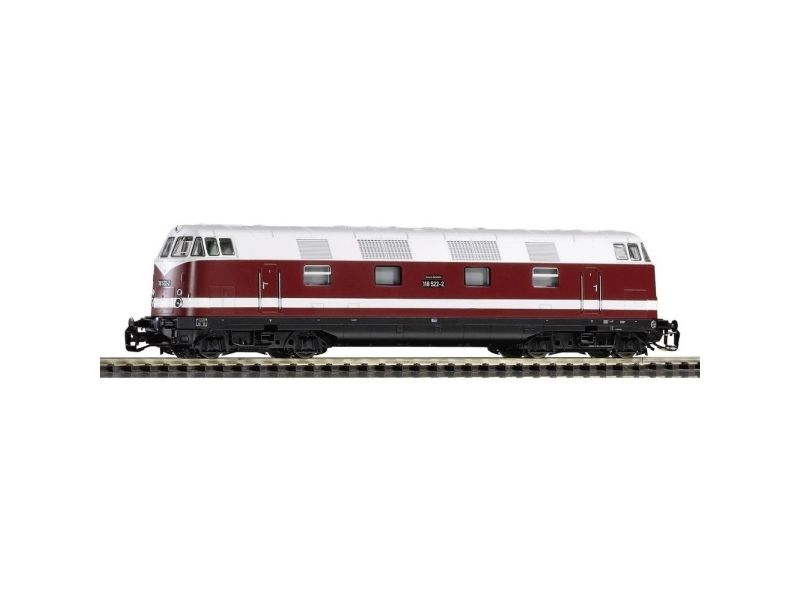 TT Diesel lokomotiv BR 118 i DR Motor med 2 svinghjul · 4 aksler · Digital Interface (PluX16) · forlygte · hæfteringe · tætte kobling kinematik · Minimum radius: 287 mm. Bemærk! Dette produkt er blevet maskineoversat.