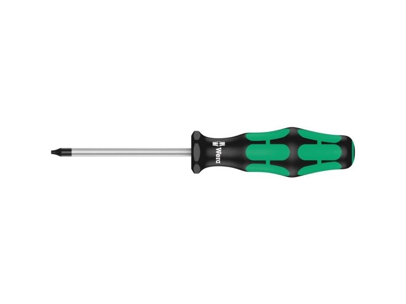 High quality Kraftform Plus screwdriver. Multi-component Kraftform handle for fast and low-fatigue working. Kraftform Plus: hard gripping zones for high working speeds whereas soft zones ensure high torque transfer. The Wera Black Point tip and a complex hardening process ensure a long service life of the tip, enhanced corrosion protection and an exact fit. "Take it easy" Tool Finder: colour coding according to profile and size. The hexagonal anti-roll feature prevents any bothersome rolling away at the workplace.