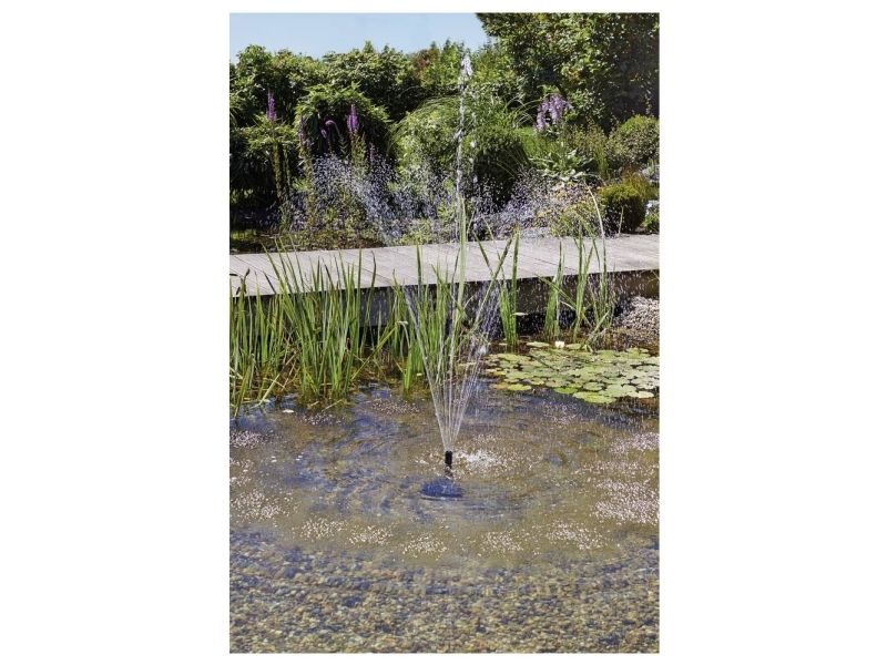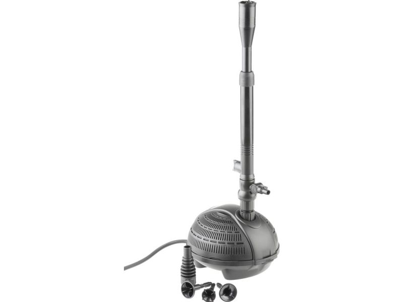 Perfekt og, frem for alt, ubesværet installation af springvand til havedammen eller pyntebrønden. Vandspilspumpens fontæne har en teleskop-forlænger, hvormed du kan tilpasse den samlede højde til dammens højde individuelt. Mulige vandbilleder er: Vulkan, stråler, klokker, bobler.