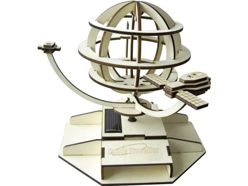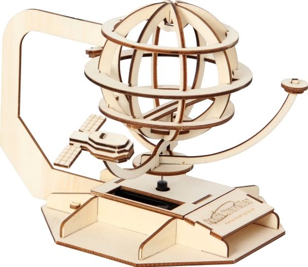 Ved lysbestråling drejer globussen med satellitter rundt om jordens akse og takket være intelligent elektronik sker dette ikke kun ved sollys. Takket være det nyudviklede drev, som bruger tydeligt mindre strøm, kører modellen også i strålende dagslys! Step-by-step vejledningen sikrer en problemfri montering.