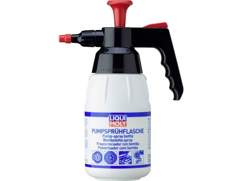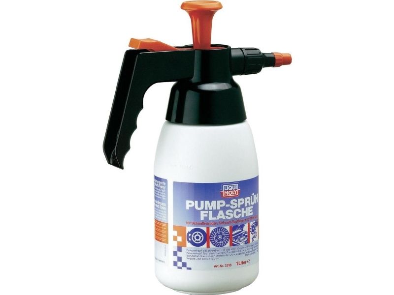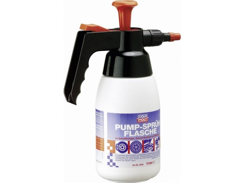 Spray flaske med en håndpumpe. At anvende mange kemikalier. Ved kemisk resistent tætningsmateriale Viton denne pumpe kan anvendes universelt. Kapacitet 1 l rensevæske. Universel brug for at anvende og forstøvning kemikalier såsom Rust Opløsningsmiddel, Rapid Cleaner, Multi Spray, Lækagedetektor og Universal Cleaner. Før du skifter til et andet produkt, skal beholderen og pumpen rengøres.