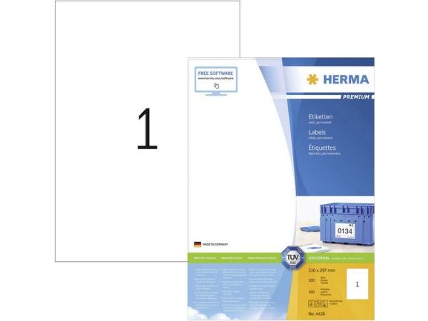 HERMA Premium - Papir - matt - permanent selv-adhesiv - hvit - A4 (210 x 297 mm) 100 etikett(er) (100 ark x 1 laminerte etiketter